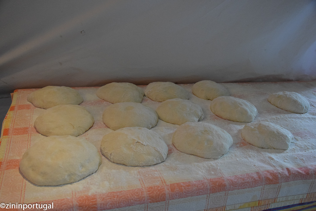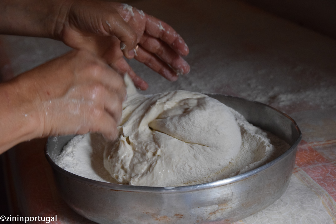 Met vijf kilo meel ( in Portugal ‘farinha T65’), een handjevol zout, 30 à 40 gram gist en wat water maakt ze in een paar uur twaalf tot veertien broden, van elk ongeveer een half kilo.