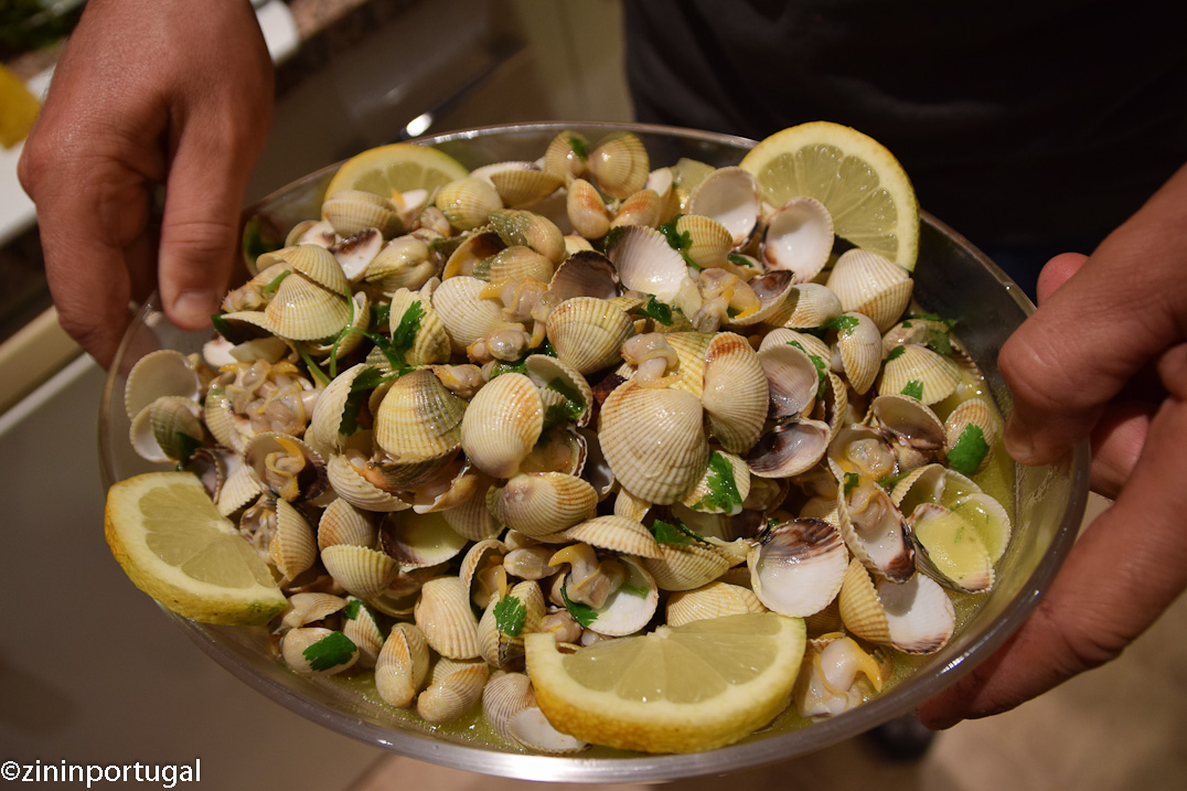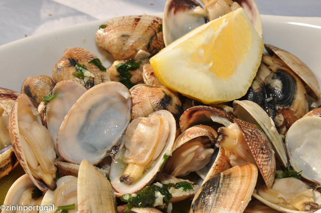 Met een of twee kilo amêijoas of berbigão (de goedkopere en kleinere, maar oh zo lekkere variant) vul je al gauw twee flinke schalen.