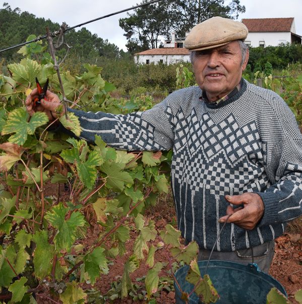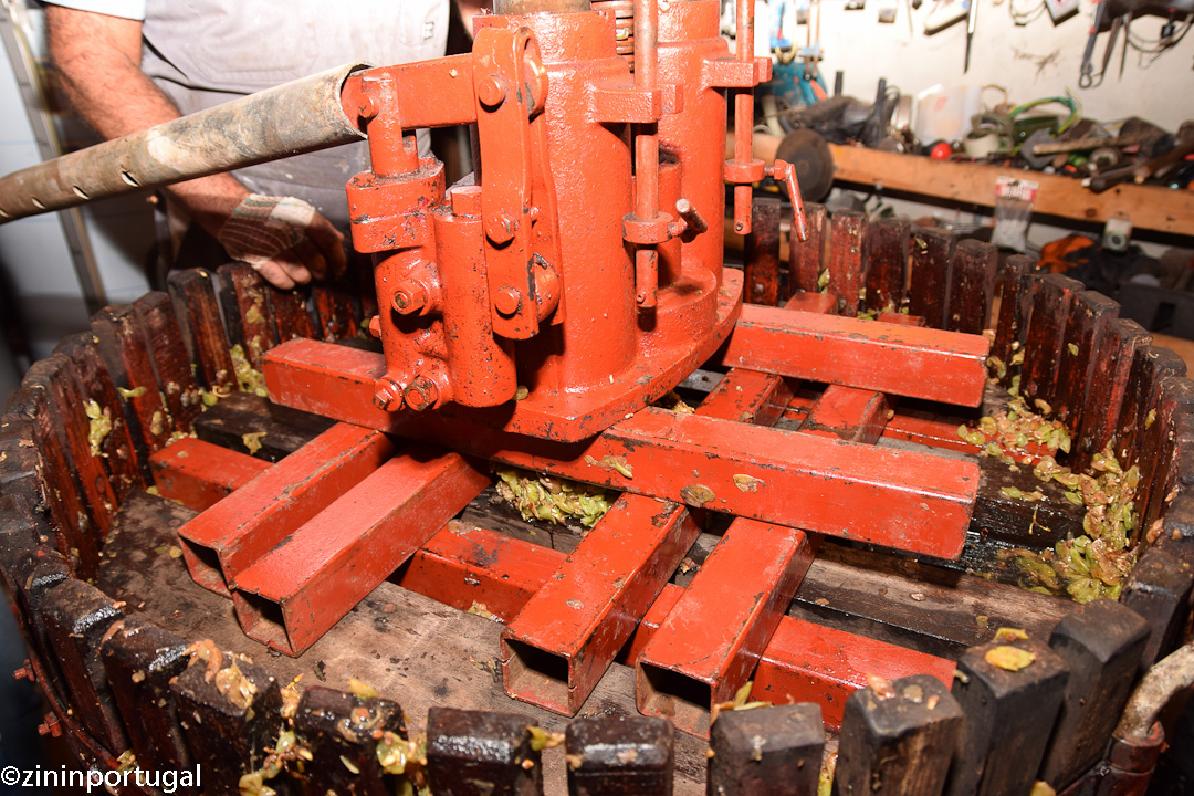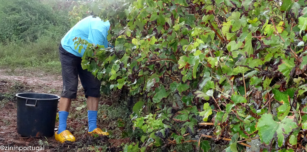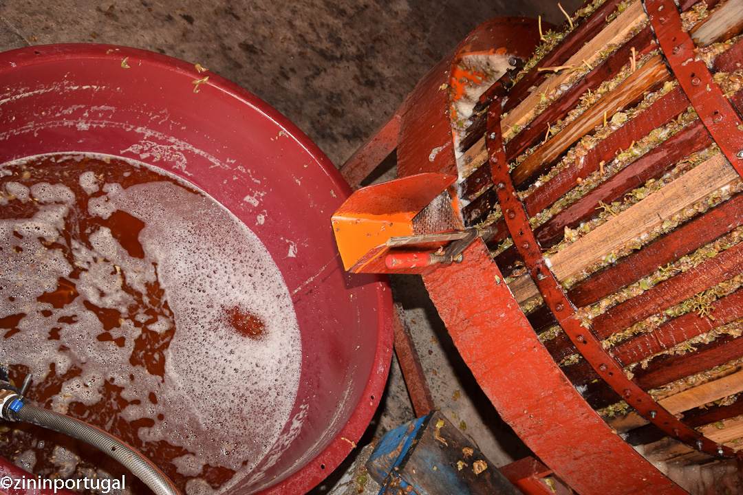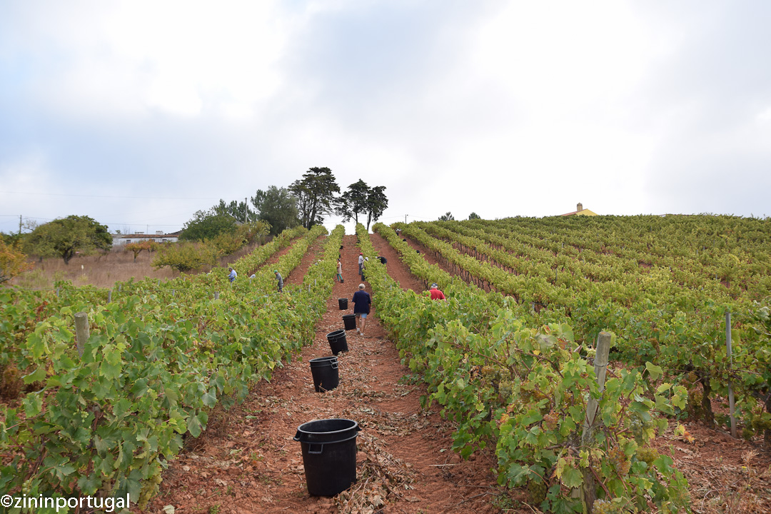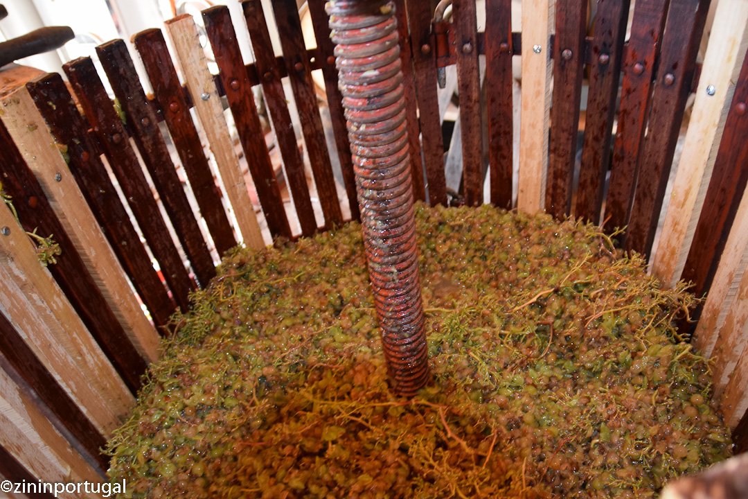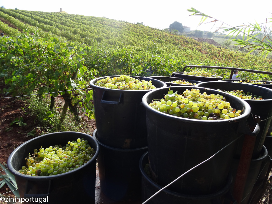 De witte druiven, van de oude Portugese rassen Fernão Pires en Seara Nova, worden door een trekker opgehaald en meteen geperst. Vervolgens wordt het sap in een roestvrijstalen vat gepompt. En dan begint het wachten. Binnen drie dagen hoort het te gisten. Dat is tegenwoordig bij veel boeren nog wel eens een probleem.