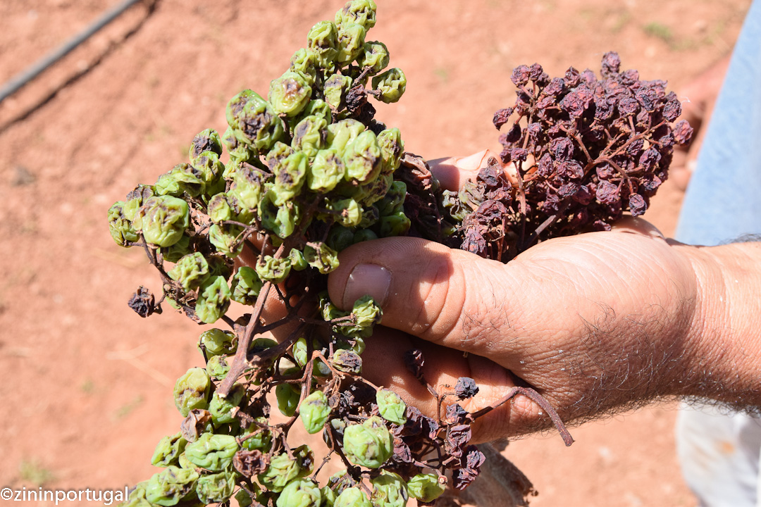 Dit jaar is het aan de Portugese Zilverkust (Costa de Prata) uitzonderlijk droog geweest. Sinds maart heeft het nauwelijks geregend en veel druiventelers hebben hun wijngaarden in augustus moeten besproeien om de oogst te redden. Sommige druiven hangen ondertussen als krenten aan de takken, totaal verdroogd. “Het is twaalf jaar geleden dat het zó droog is geweest”, verzucht menigeen.