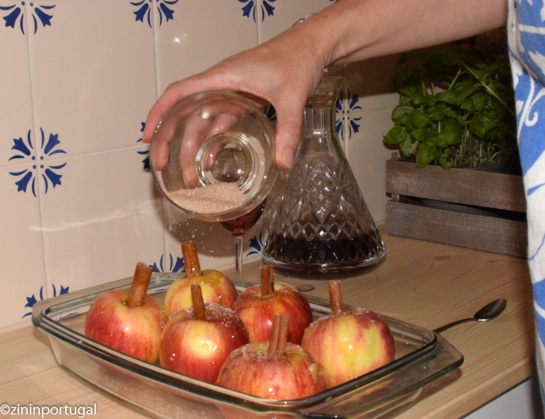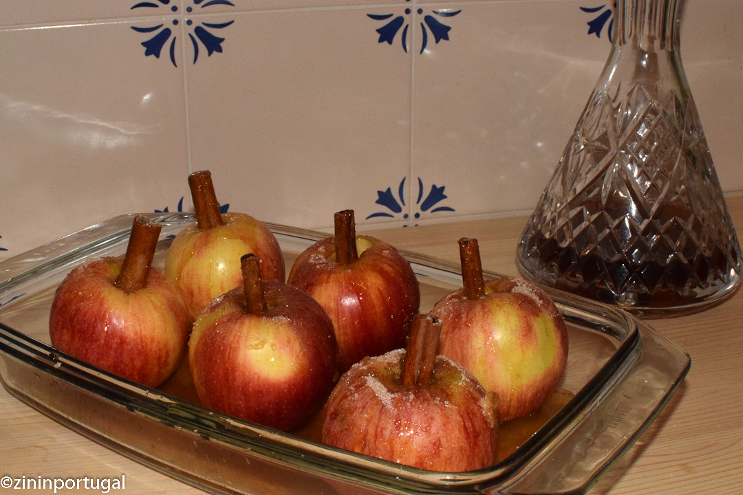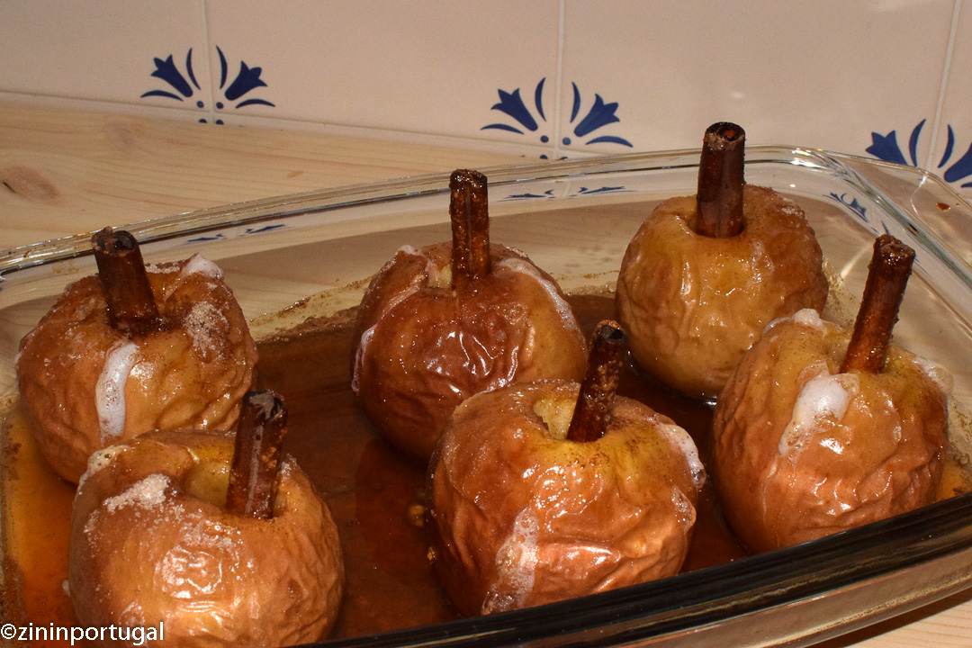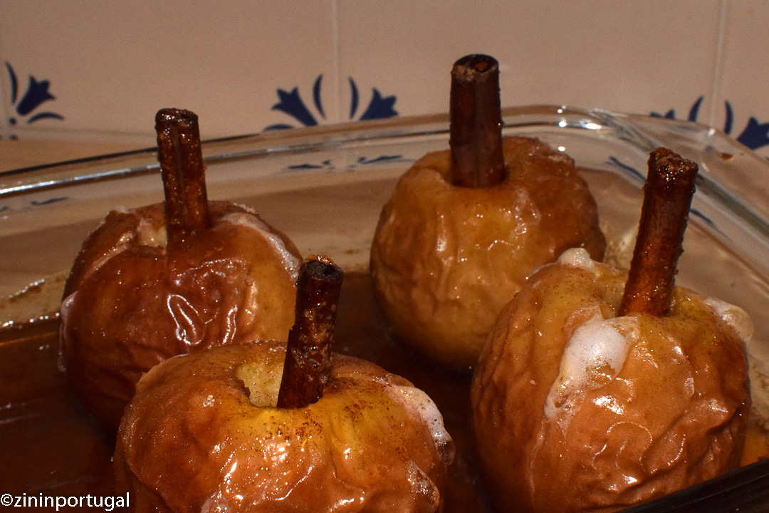 In Portugal zie ik een ‘maçã assada’ voornamelijk als ‘kaal’ toetje voorbijkomen, zonder fratsen (lees: ijs en slagroom).
