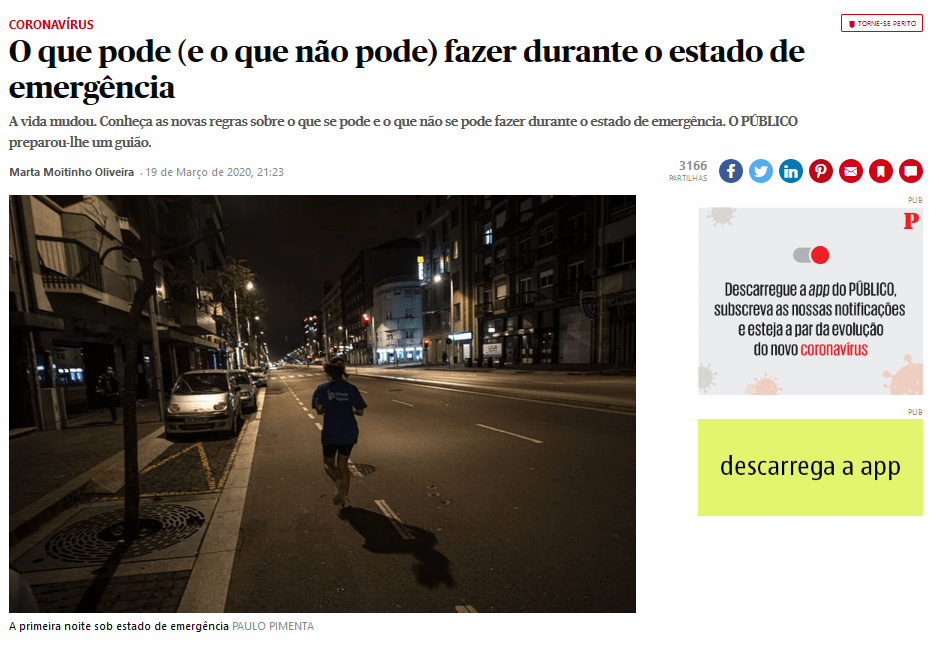 Wat betekent deze ‘Estado de Emergência‘ nou in de praktijk? Wat mag je wel (en vooral wat mag niet)? Speciaal voor Nederlanders en Belgen heb ik een deel van het artikel van donderdagavond 19 maart, dat in de onvolprezen krant Público verschenen, is vanmorgen vroeg vertaald.