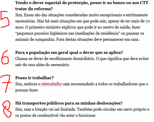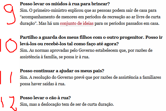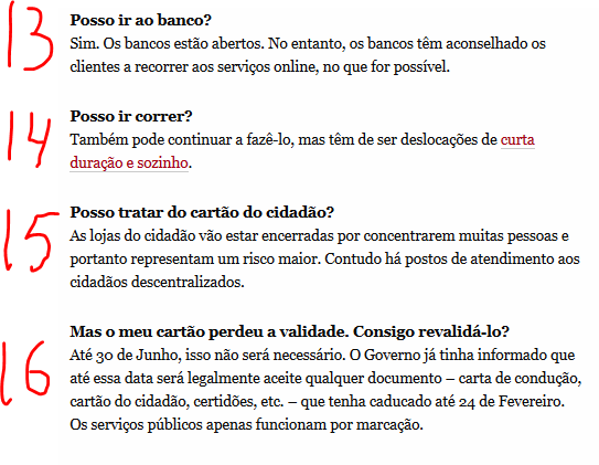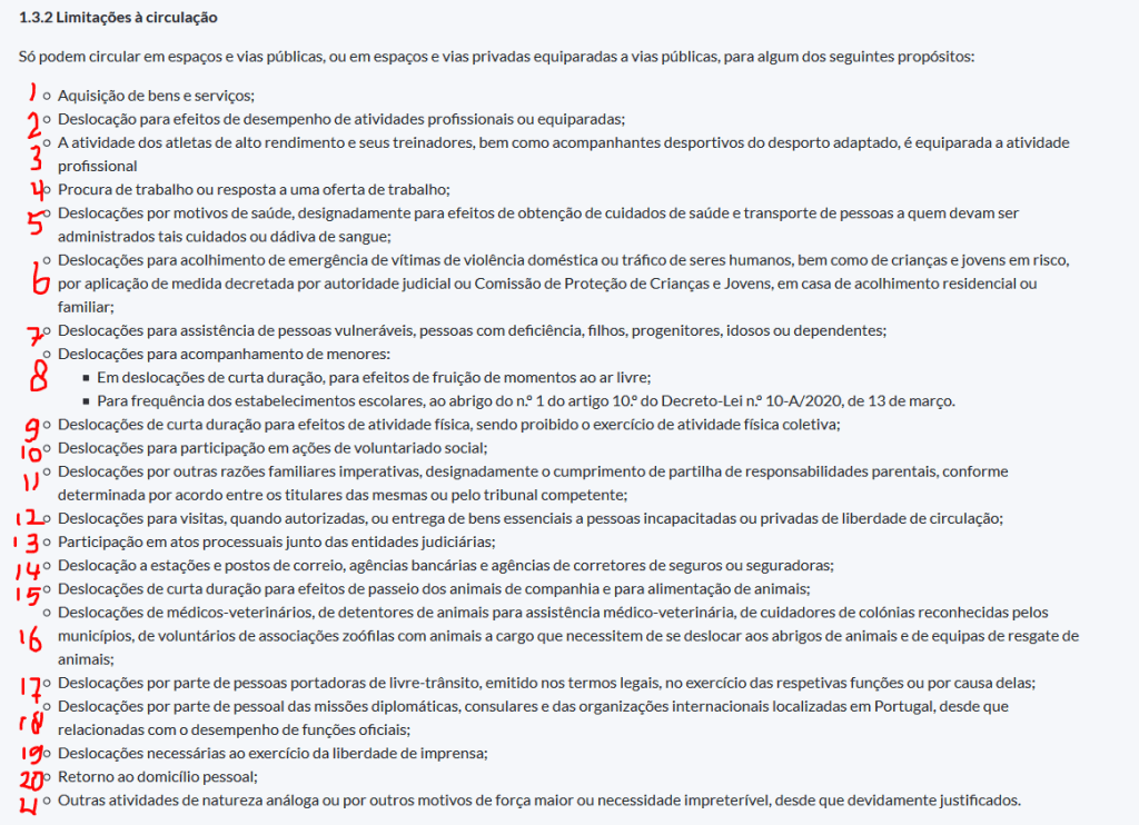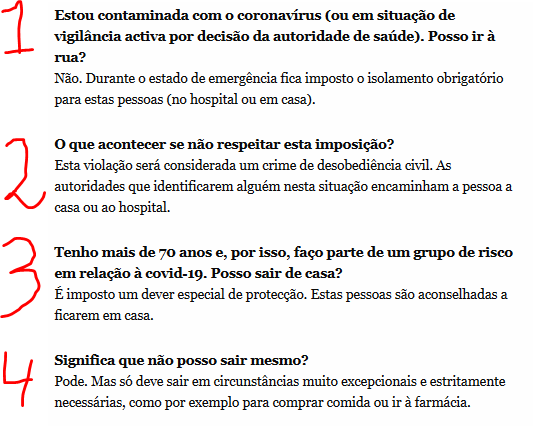 Veel heb ik vrijdagmorgen al vertaald (basis artikel in de krant Público), maar hieronder zaken die me verder nog opvallen, bijvoorbeeld onder het kopje 1.3 dat over de plicht van thuisisolatie gaat. Topsporters, hun trainers en begeleiders van aangepaste sport, dús wel de weg op mogen, want hun werkzaamheden vallen onder ‘professionele activiteit’. Staat een tekst schuin, dan is het mijn eigen persoonlijke toevoeging. Meestal zijn dat overpeinzingen of dingen die ik opvallend vind.