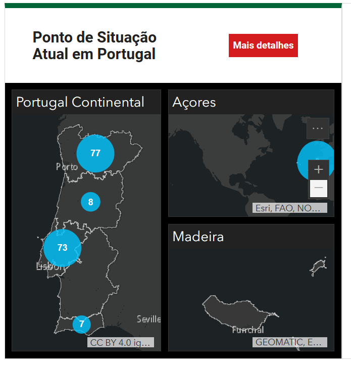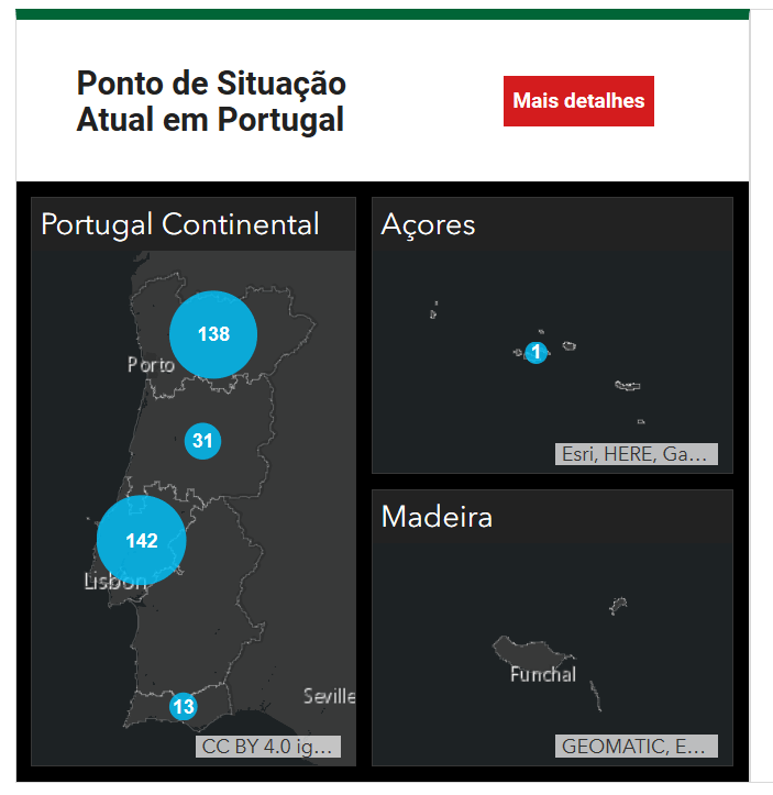 Op de site van de Direção-Geral da Saúde kun je precies nagaan waar en hoeveel coronagevallen er zijn. Ik tel er vrijdag 13 maart 111 op deze officiële site van het ministerie van volksgezondheid. Voor updates kun je op de link klikken: https://covid19.min-saude.pt/