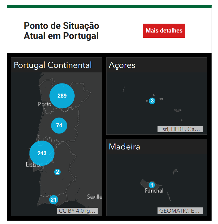 Coronagevallen in Portugal : covid19.min-saude.pt (officiële site van het ministerie van volksgezondheid)