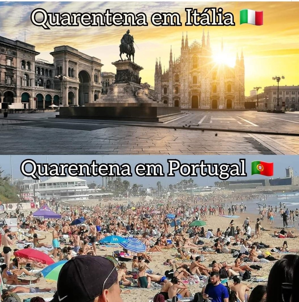 Afgelopen maandag 9 maart werd al aangekondigd dat studenten niet meer voor colleges naar de universiteiten van Lissabon en Coimbra hoefden te komen. Op internet circuleerde woensdag een foto van het strand van Carcavelos. Wat was er gebeurd? De studenten waren op de zonovergoten warme 11 maart en masse naar de zee verkast waar ze gezellig hutje mutje bij elkaar lagen. De memes logen er niet om: