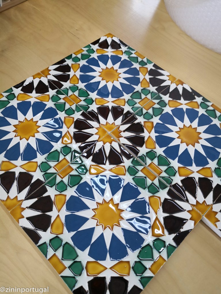 Van de eigenaar en zijn vrouw leer ik dat de geometrische motieven een Spaans-Arabische oorsprong hebben. De moren mochten geen dieren, mensen of bloemen afbeelden en hebben zich dus toegelegd op het fabriceren van geometrische patronen die tot in het oneindige door kunnen lopen. Doordat de tegels reliëf hebben blijft het glazuur bij het bakken mooi op de juiste plek.