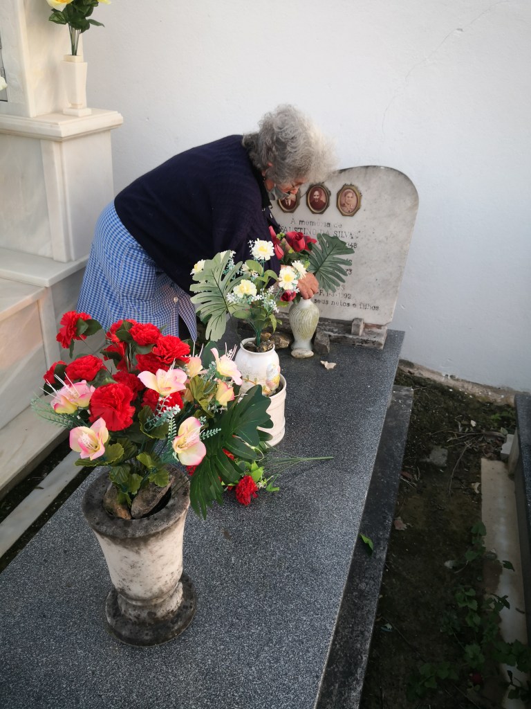 Verder geldt er vanaf 30 oktober tot 3 november een verbod om je te verplaatsen buiten de gemeentegrens. Op 1 november is het Allerheiligen en gaan veel mensen op pad. Traditiegetrouw ga je dan met de familie de graven poetsen. Tante Tia en ik hebben daarom gisteren tegen het vallen van de avond maar alvast ‘verse’ rode plastic anjers gebracht. Staan onze graven er in ieder geval weer netjes bij. Een weekje meer of minder maakt voor de eeuwigheid ten slotte toch niet uit!