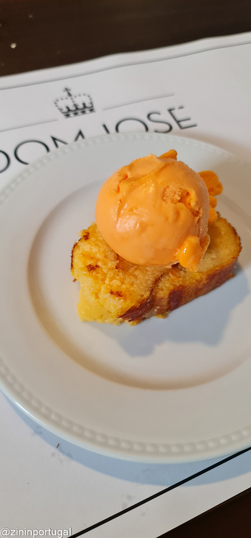 Over Dom José kan ik kort zijn: het eten is er beslist goed, ruim voldoende voor grote hongerige magen, de bacalhau uitmuntend zelfs, de bediening aardig, de wijn heerlijk, maar op de een of andere manier ontbreekt het die middag aan sfeer in het achterafkamertje waar we mogen plaatsnemen. We hebben voor 26 euro de man geluncht, wat voor ons dik tien /vijftien euro meer is dan hetgeen we normaal voor een lunch betalen. Vooraf brood en olijven, champignons met knoflook (aanrader!), kaas (zes dunne plakjes voor 4 euro) en presunto (ham) van porco negro, zeer smaakvol. Daarna de bife à inglesa (niet echt een aanrader, dunne plakjes rosbief met saus erover) , garnalencurry (lekker), bacalhau (topper van die middag) en panadinhos de maruca, soort lange vissticks (eenvoudig gerecht, maar verder prima). Als toetje hebben we koffie met truffels genomen en één torta de laranja, opgerolde sinaasappelcake, met mandarijnijs.