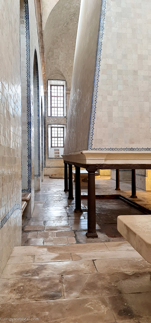 Voor het klooster dien je een toegangsbewijs te kopen. Ik vind de keuken in dit klooster prachtig en het dakterras, dat via een smalle wenteltrap te bereiken is, ook een bezoekje waard. Klik hier voor openingstijden en tickets (6 euro, senioren en families krijgen korting): Mosteiro de Alcobaça.