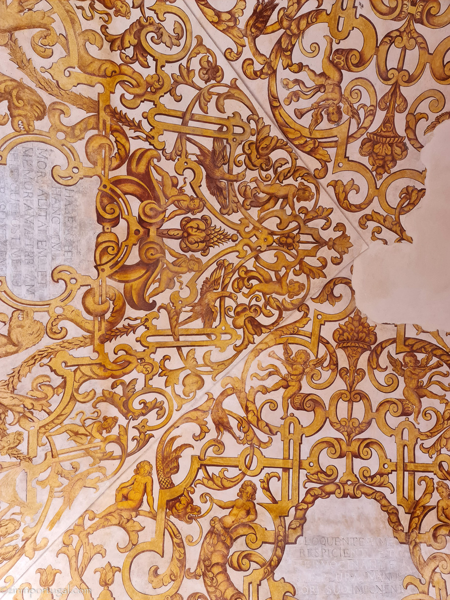 En mocht je je afvragen: waarom zijn deze graven zo beschadigd? Dan mag je de troepen van Napoléon vervloeken! Die hebben nogal huisgehouden in deze contreien (lees ook maar eens Niet zomaar een française ). Ook het graf van Inês kent flinke beschadigingen, er is een heel stuk uitgehakt. Het verhaal gaat rond dat de soldaten ervan opkeken dat Inês nog steeds prachtig blond haar had (net als in de tijd van Pedro).