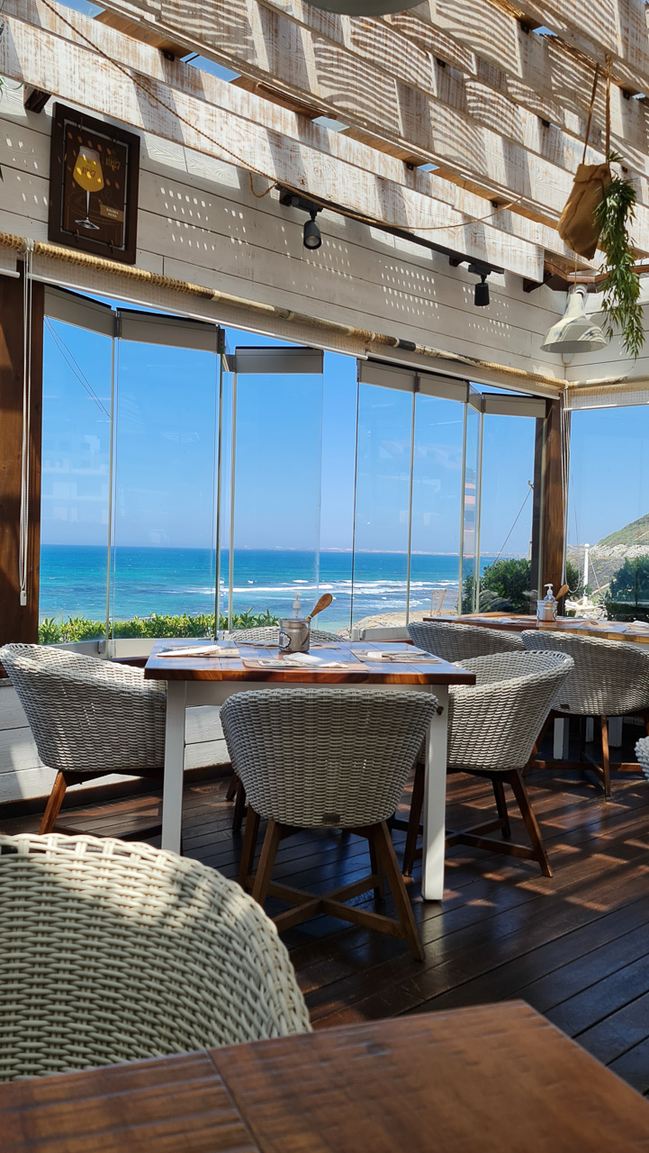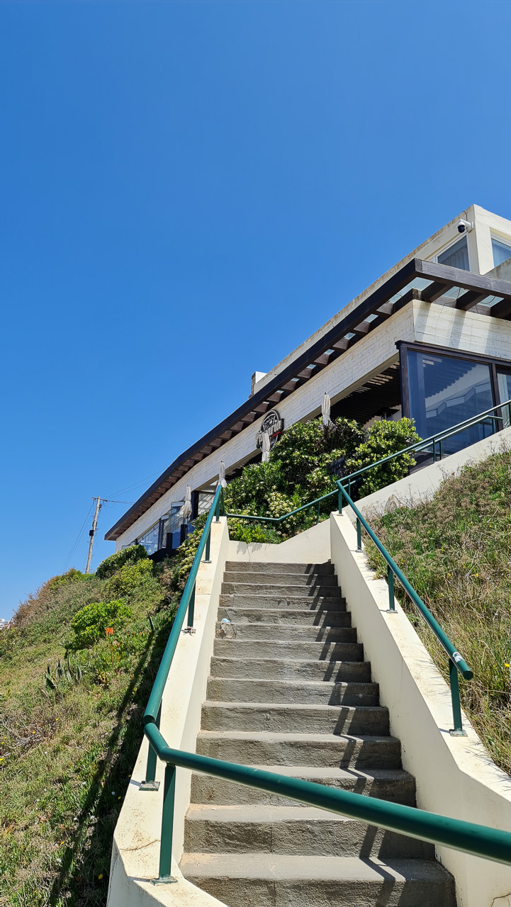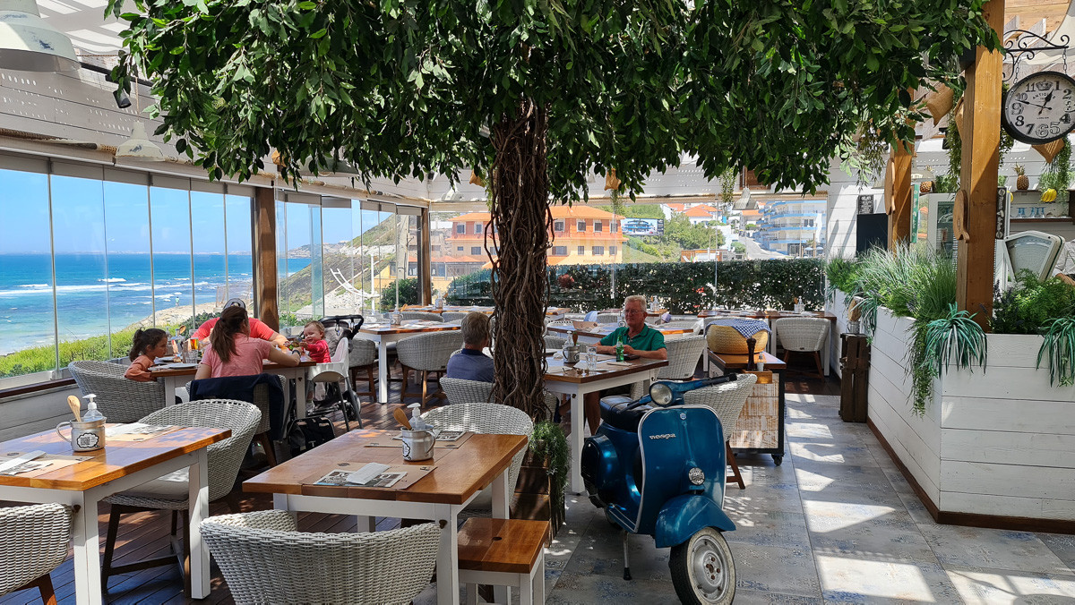 We zijn ooit in Praia da Areia Branca beland, omdat onze kater Frans hagel in zijn lijf had en we door onze dierenarts werden doorverwezen naar een dierenarts vlakbij Lourinhã die CT-scans maakte. Omdat de scan nogal lang duurde, zijn we de omgeving gaan verkennen en sindsdien verzinnen we steeds een reden om hier te lunchen met uitzicht op zee.