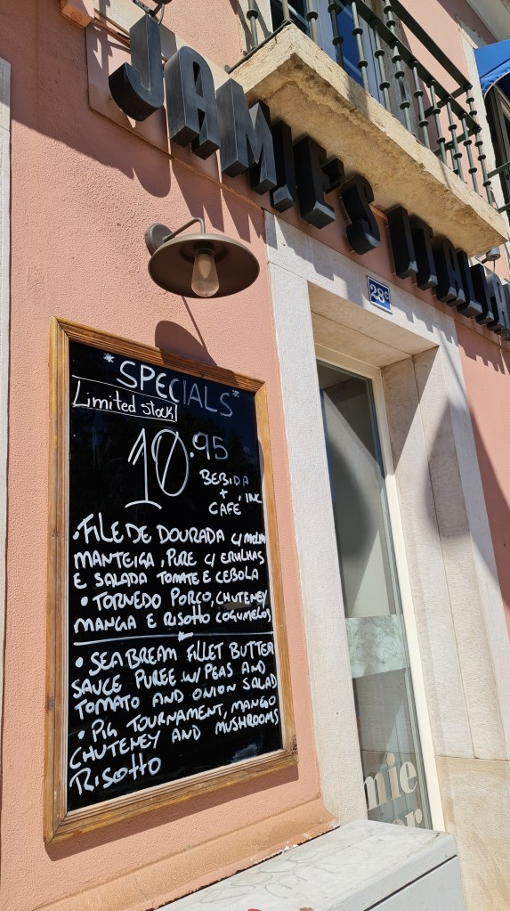 Dit restaurant heeft ook enkele vegetarische gerechten op de kaart, wat in onze contreien best bijzonder is. De cannelloni de espinafres is heerlijk (spinazie cannelloni). Voor vleesliefhebbers, ga voor de bife da vazia en wie bacalhau wil, kiest bijvoorbeeld de canneloni de bacalhau. Alles was uitermate verzorgd én de bediening uiterst vriendelijk (spreken ook nog eens Engels). Voor zes euro heb je daarnaast een liter uitstekende huiswijn. En toe, kregen we Bagaceira, brandewijn, gemaakt door Chris&Helga uit Cortém, een nabijgelegen dorp. Volgende week vrijdag hebben ze een fado-avond (reserveren verplicht). Inclusief eten en drinken 25 euro!