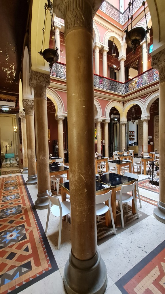 In dit Palácio Alverca, waar nu Casa do Alentejo in huist, vind je prachtige zalen. Delen van dit gebouw zijn uit het einde van de 17e eeuw. We kijken onze ogen uit voordat we in een van de twee zalen van het restaurant op de eerste verdieping belanden.