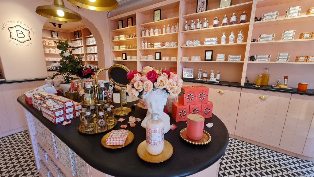 Naast dit zaakje zit een van de weinige zaken van Benâmor. Ik ben dol op de olie en crème van dit oude Portugese cosmeticamerk (en nee, ik word niet betaald om dit te zeggen). De laatste koningin van Portugal gebruikte al de lijn Rose Amélie van Benâmor. Deze lijn ruikt heerlijk naar rozenblaadjes. Heb altijd een kleine tube handcrème in mijn tas hier. Ik geloof dat je in Nederland tegenwoordig Benâmor bij de Bijenkorf kunt krijgen. Officiële winkels van dit merk heb je alleen in Porto en Lissabon, maar in het hele land verkopen de betere parfumeriezaken dit merk ook. En volgens mij kun je het ook op de luchthavens krijgen, maar helemaal zeker ben ik daar niet van.