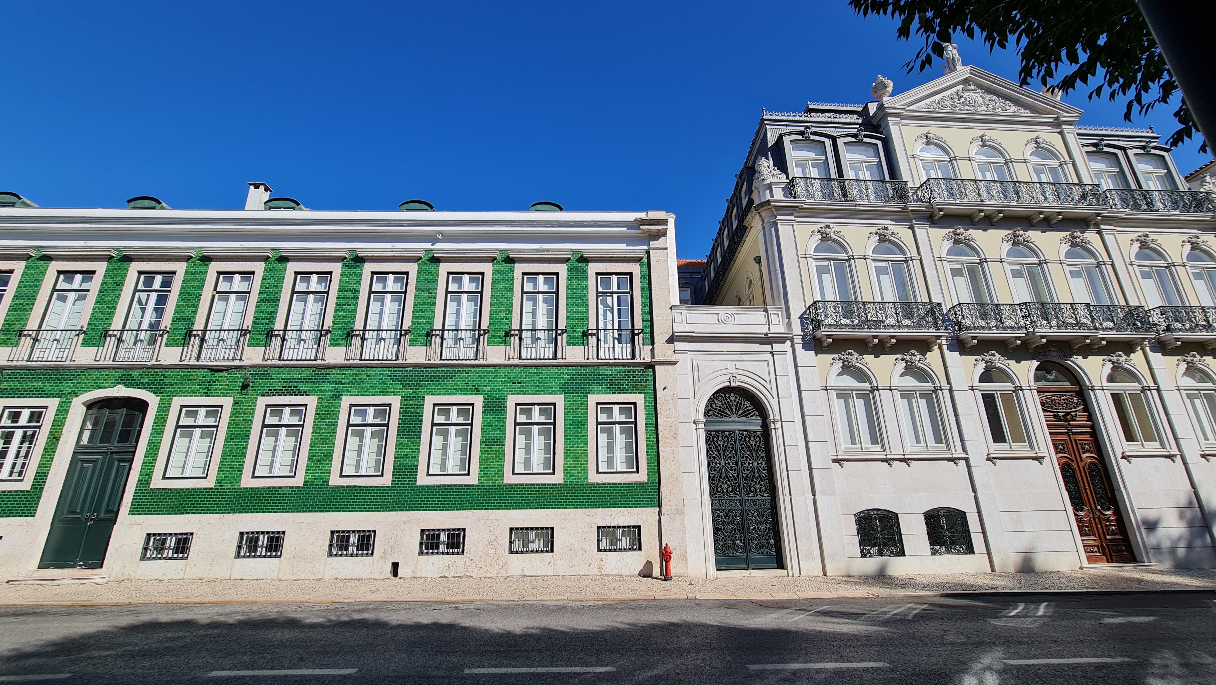In dezelfde straat als de Benficawinkel, rua das Portas de Santo Antão lopen we langs een deur, waarachter tot onze verrassing een stadspaleis zit mét restaurant.