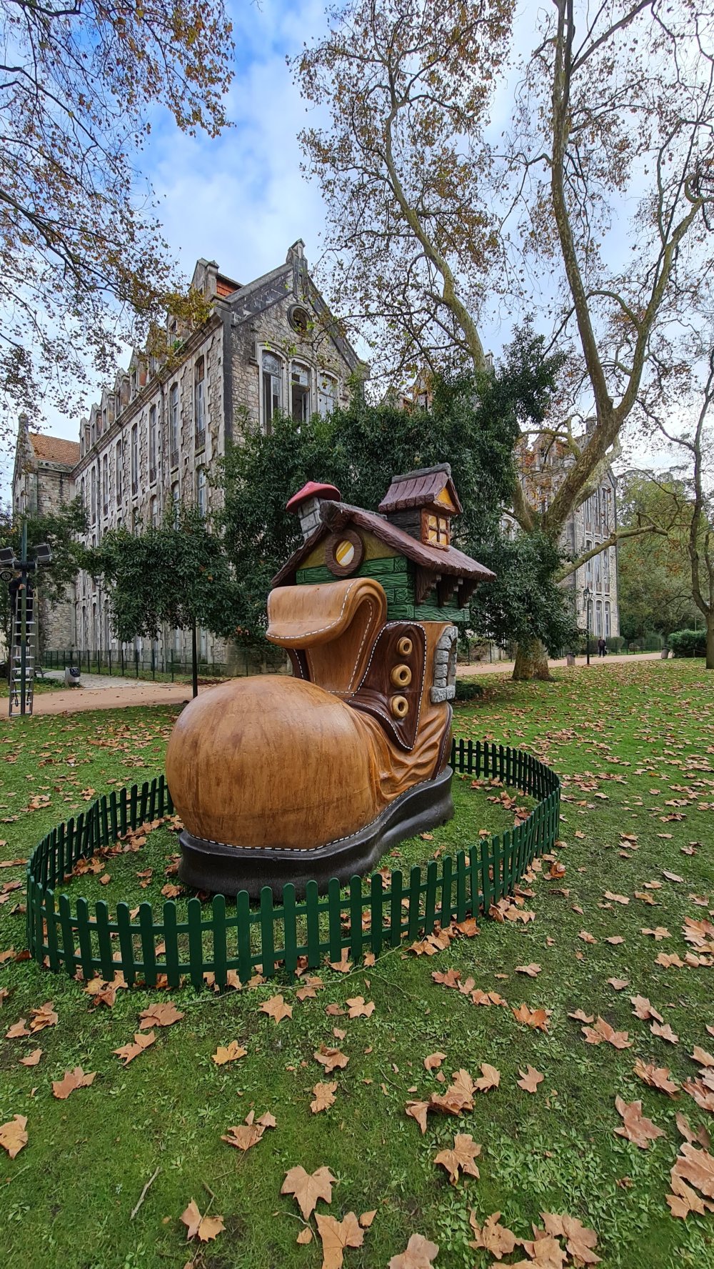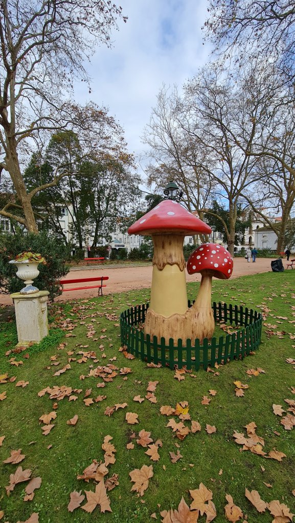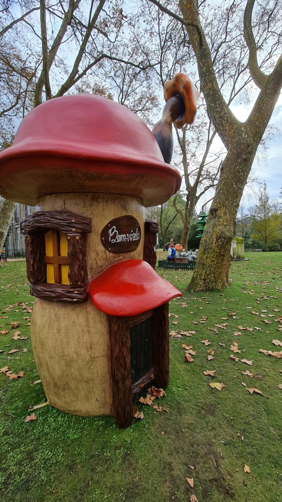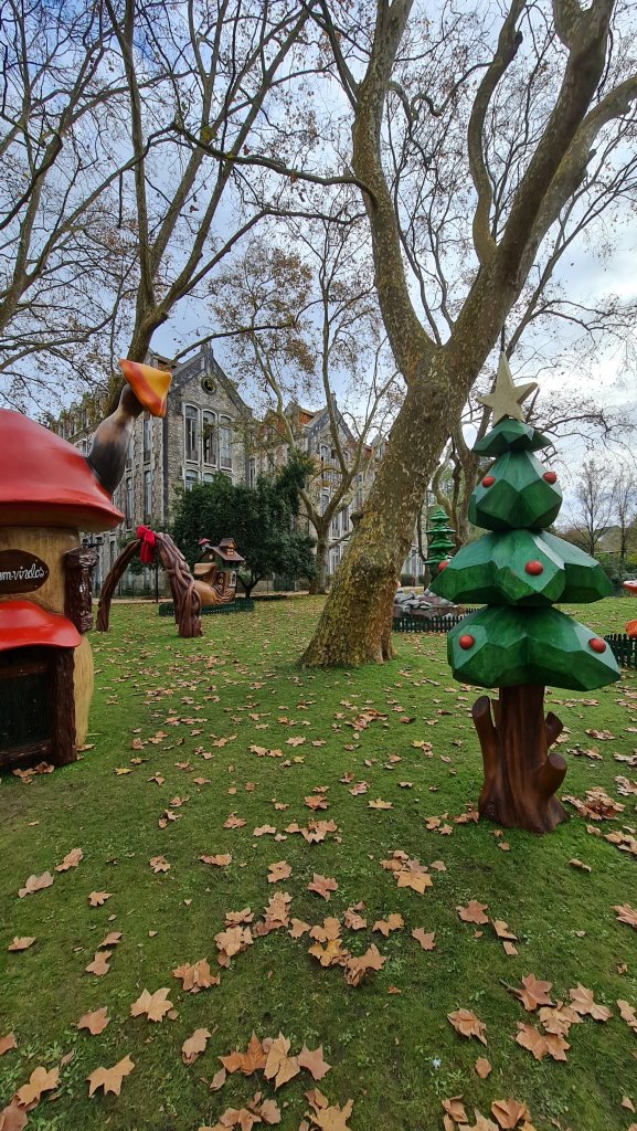 Tot mijn verbazing staan er dit jaar in het park Dom Carlos, hartje centrum, ineens kabouterhuisjes. Een aparte aanblik voor volwassenen, zo met die spookgebouwen op de achtergrond. Maar wat kan het de kinders schelen? Die zien een kabouterkerstboom, een reuzenschoen en kabouters! Even zou je gewoon weer 5 willen zijn. Ik zal eerlijk bekennen dat ik lang in kabouters heb geloofd. Mijn ome Jan had er vijftig jaar geleden een handje van om bij willekeurige tuinen te roepen: “Daar, daar, een kabouter”. Als ik dan keek, was ie natuurlijk nét weg.