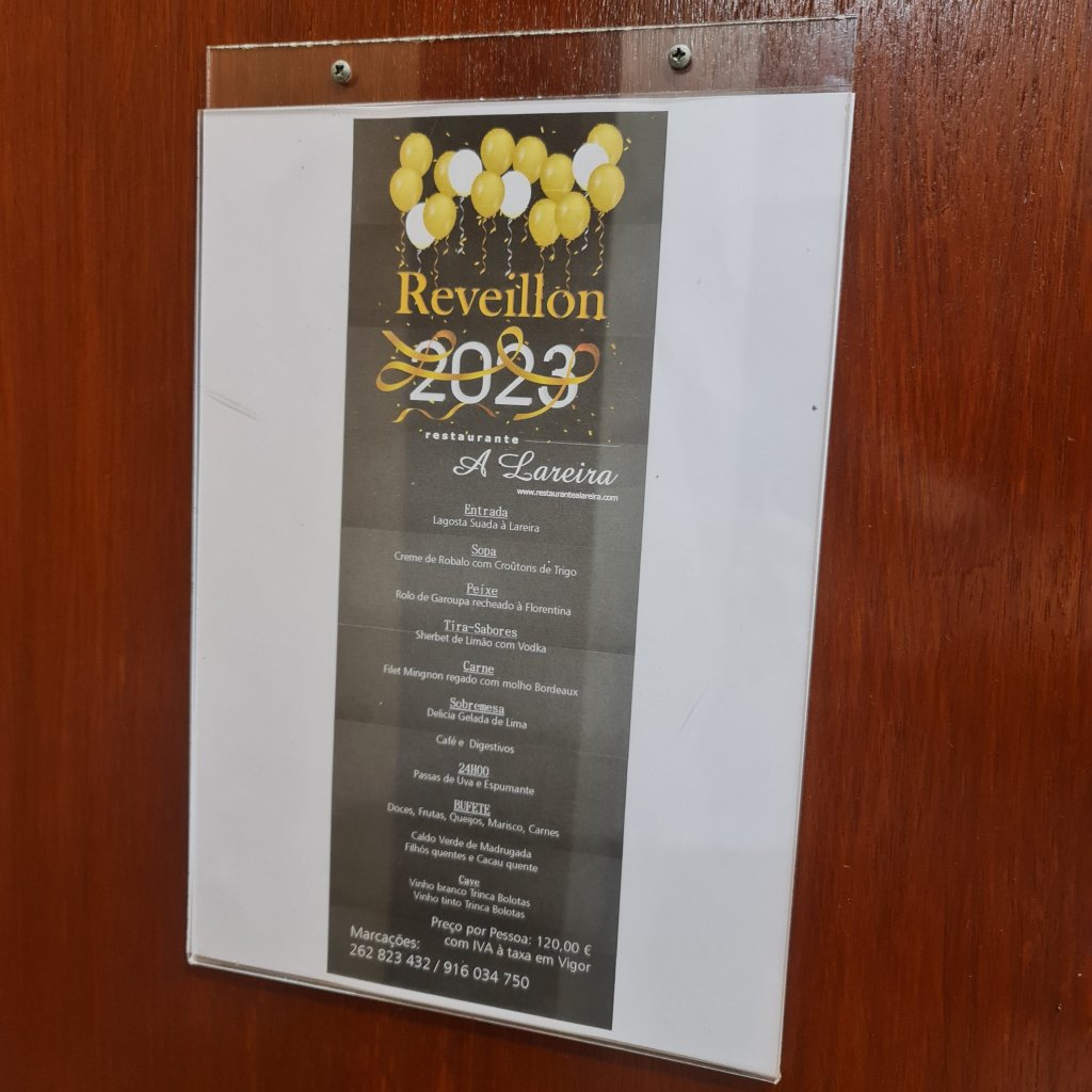 Bij veel zaken kun je nu lekkers voor kerst bestellen. Zo zie ik op Insta dat Bites & Bitaites en MoMo Sweets & Tea bestellingen voor taarten en kerstmaaltijden opnemen. Bij Mercearia Pena kun je cabazes de Natal (Portugese variant van kerstpakket) laten maken. Maar ook zie ik overal aanplakbiljetten voor een groots reveillon om 2023 in te luiden. Zo hebben restaurante Lisboa XL en restaurante Lareira feestelijke menu’s met ontelbaar veel lekkers en flinke afsluiters (drank en dans 😉).