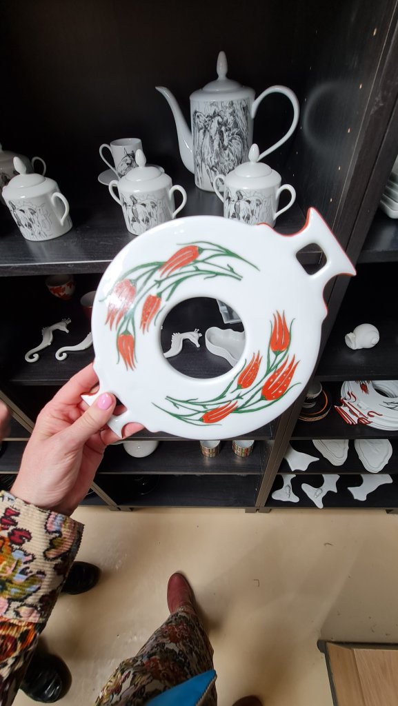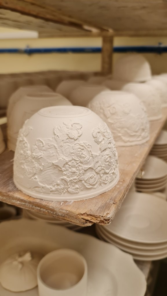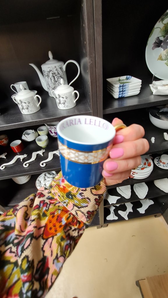 Nu ik hier zo rondloop, ontdek ik dat het porselein van Vista Alegre toch meer massaproductie is. Bij Braz Gil Studio is het handwerk. En in Portugal weten ze dat ook. Zo worden de beroemde kopjes van de prachtige boekhandel Lello in Porto hier vervaardigd! Is het servies van het vijfsterrenhotel Val Verde in Lissabon van Braz Gil Studio en kun je bij het Gulbenkian pannenonderzetters kopen die ook hier vandaan komen.