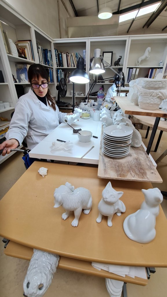 Over katten gesproken. Joaquim Braz Gil wijst me op de kast. Rechtboven ligt een echte te slapen. Nou dan heb je me als kattenliefhebber. Een porceleinfabriek waar tussen alle kostbare objecten een kat mag rondlopen, wat bijzonder!