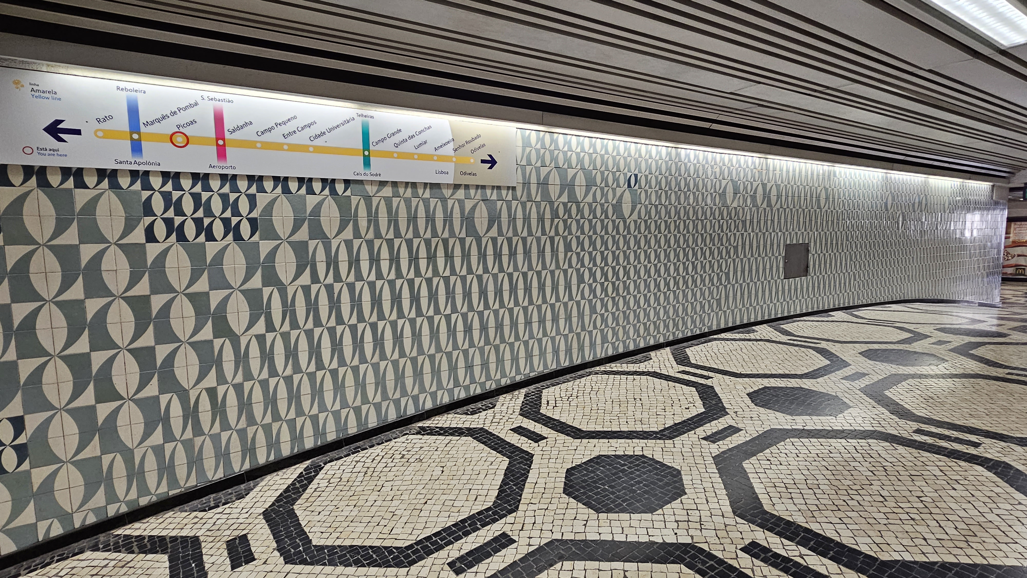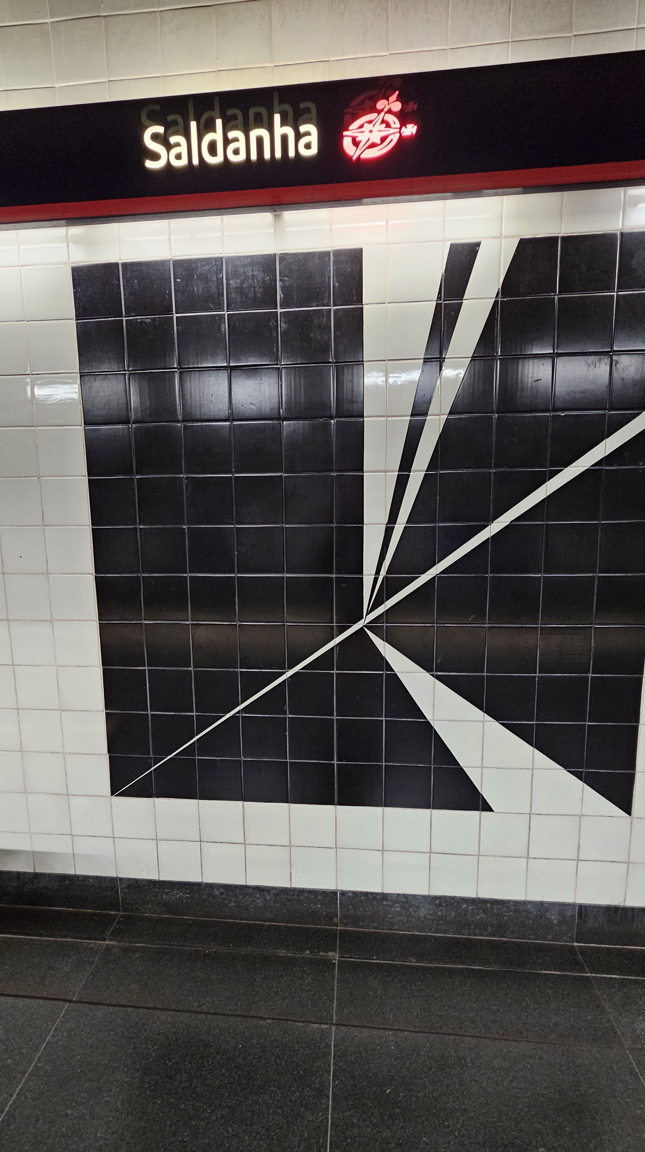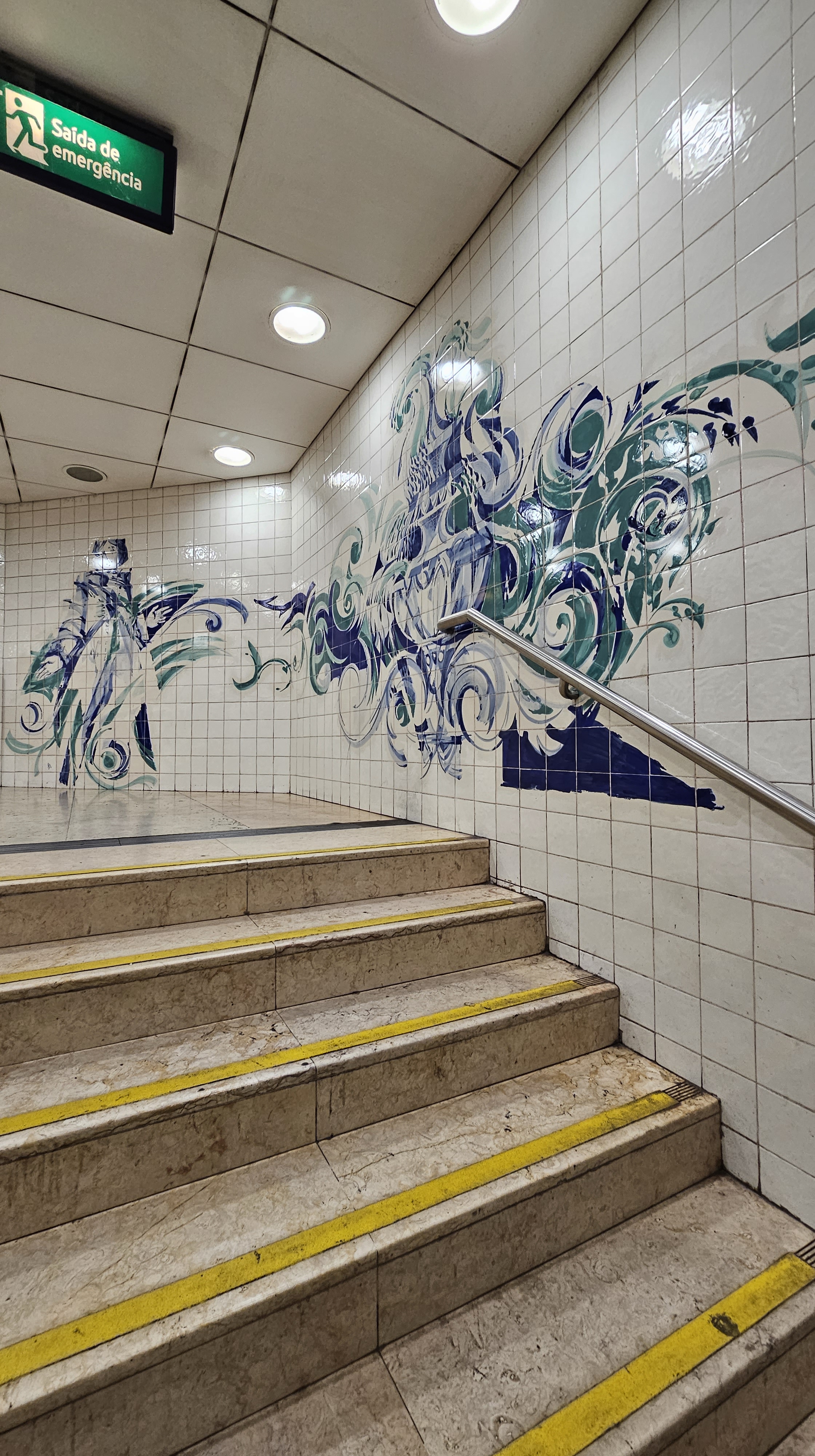 Met de metro van Gare do Oriente naar Saldanha reis je in een vloek en een zucht. Ten minste: als je je niet verliest in het fotograferen van al het moois dat op de stations te zien is. Hieronder een overzicht van het metrostation Saldanha: