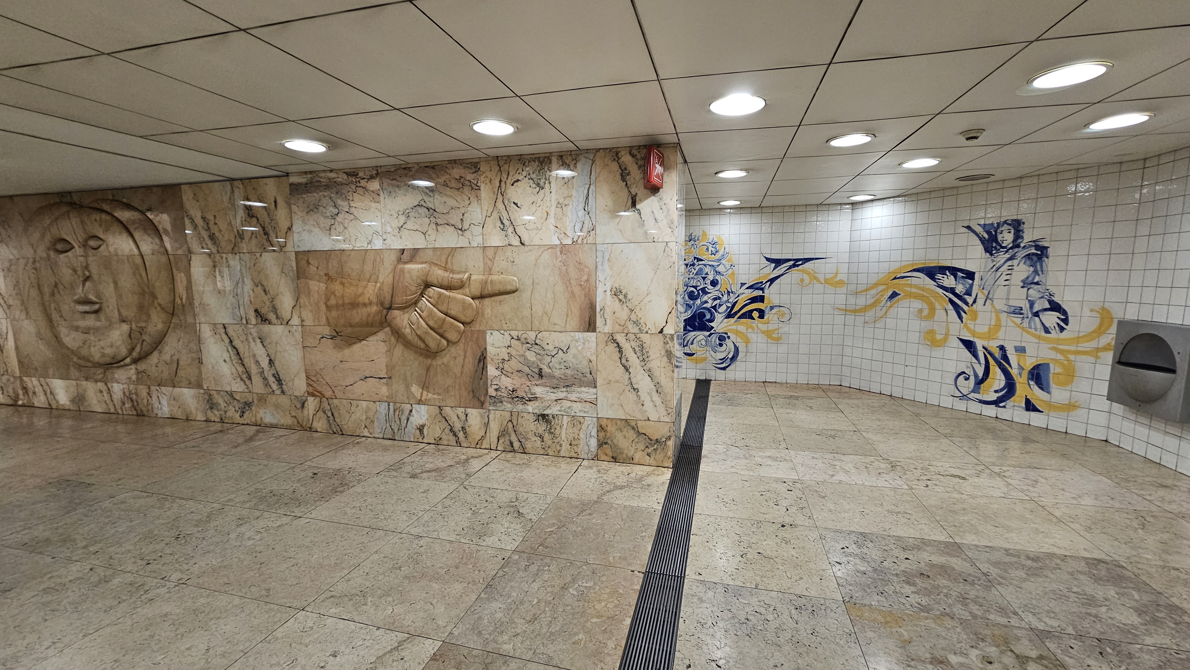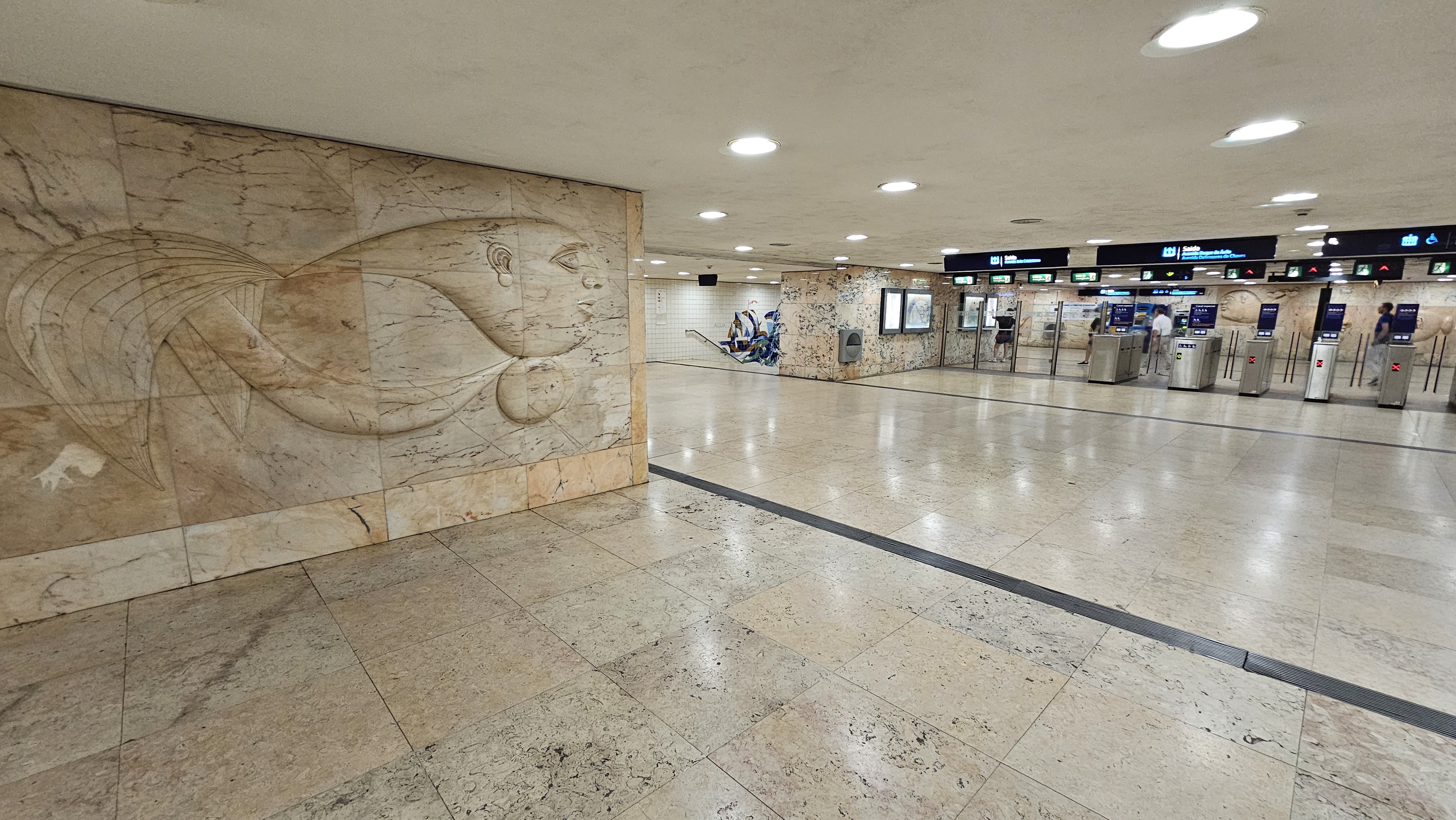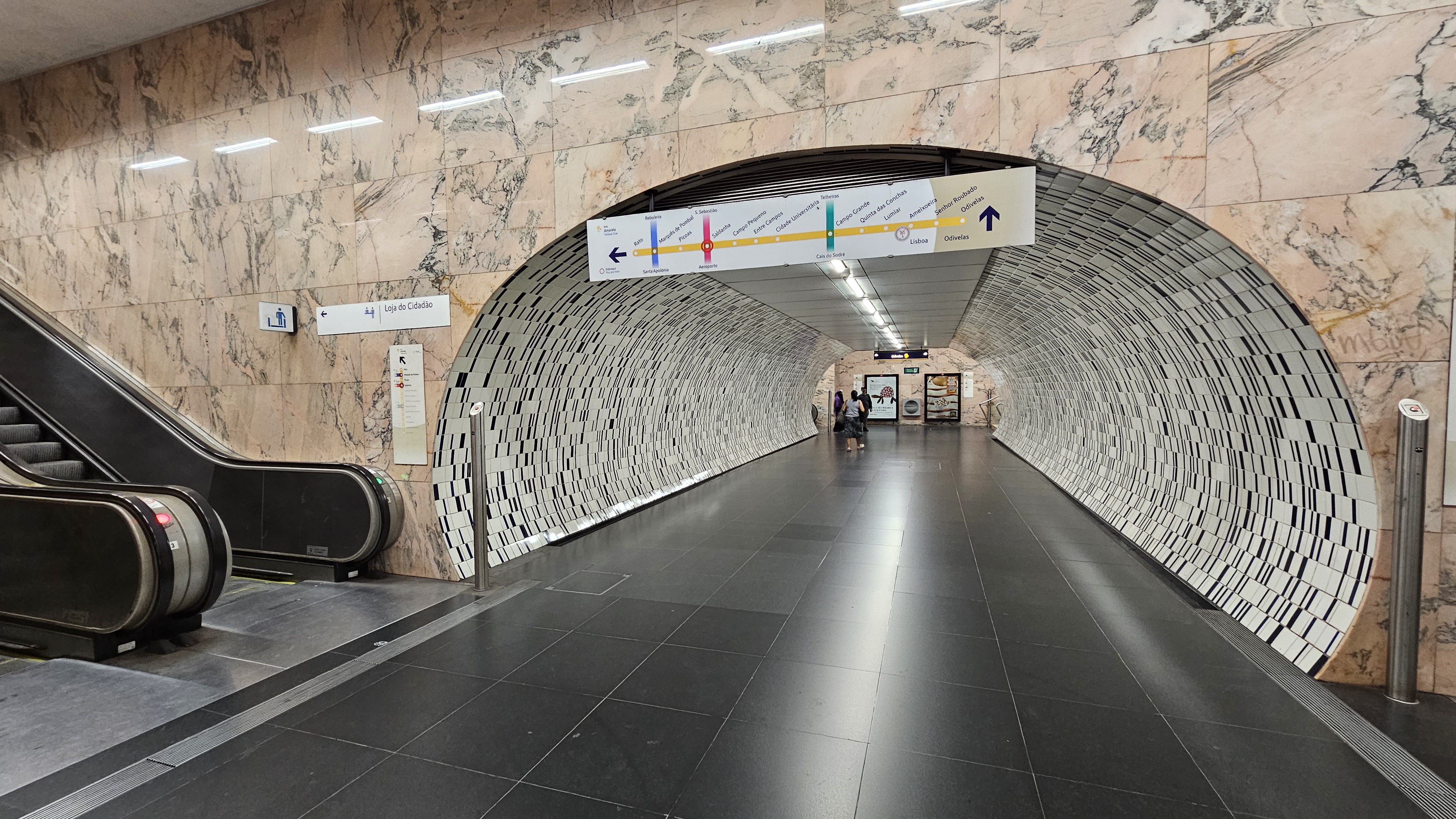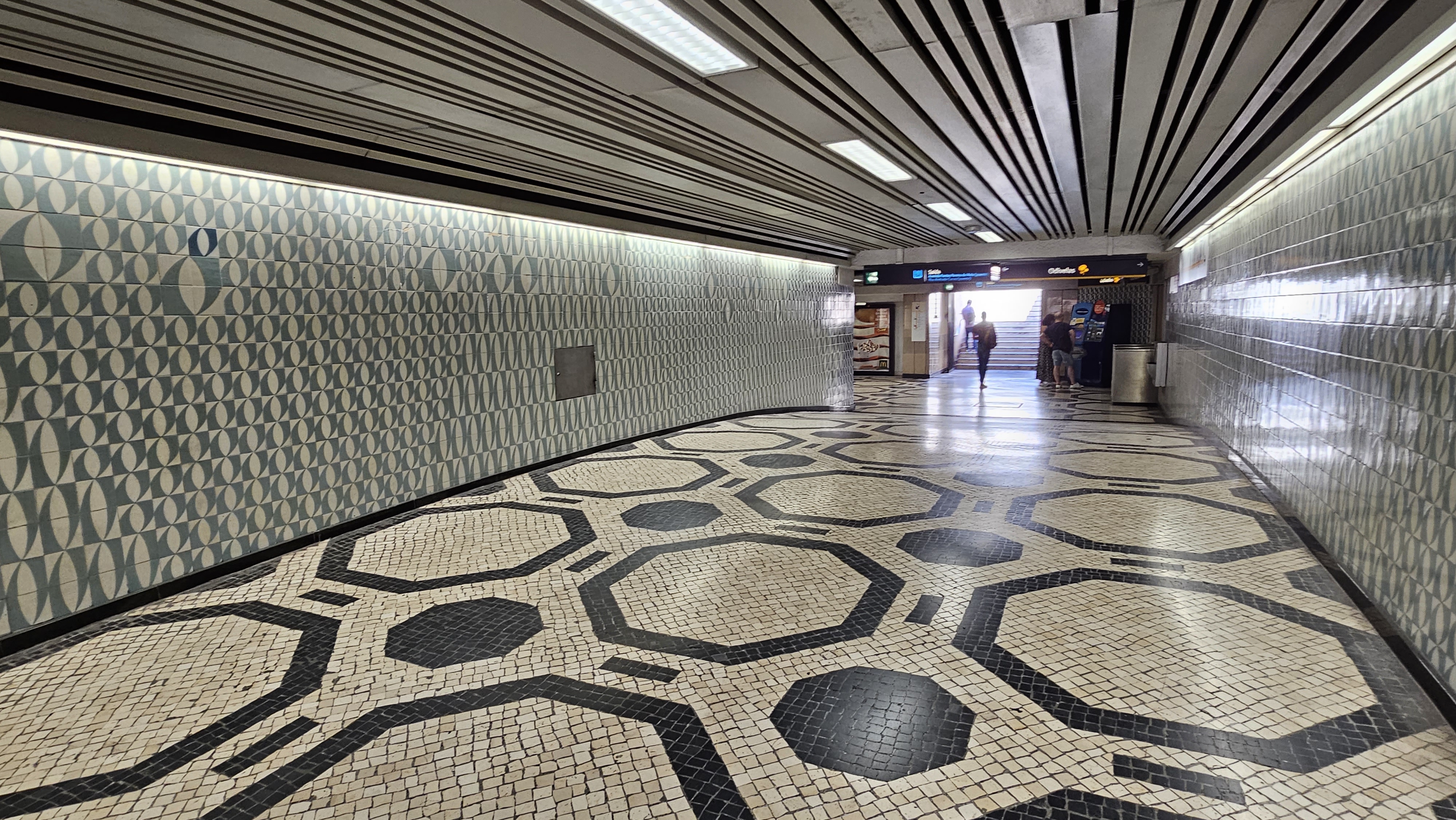 Met de metro van Gare do Oriente naar Saldanha reis je in een vloek en een zucht. Ten minste: als je je niet verliest in het fotograferen van al het moois dat op de stations te zien is. Hieronder een overzicht van het metrostation Saldanha: