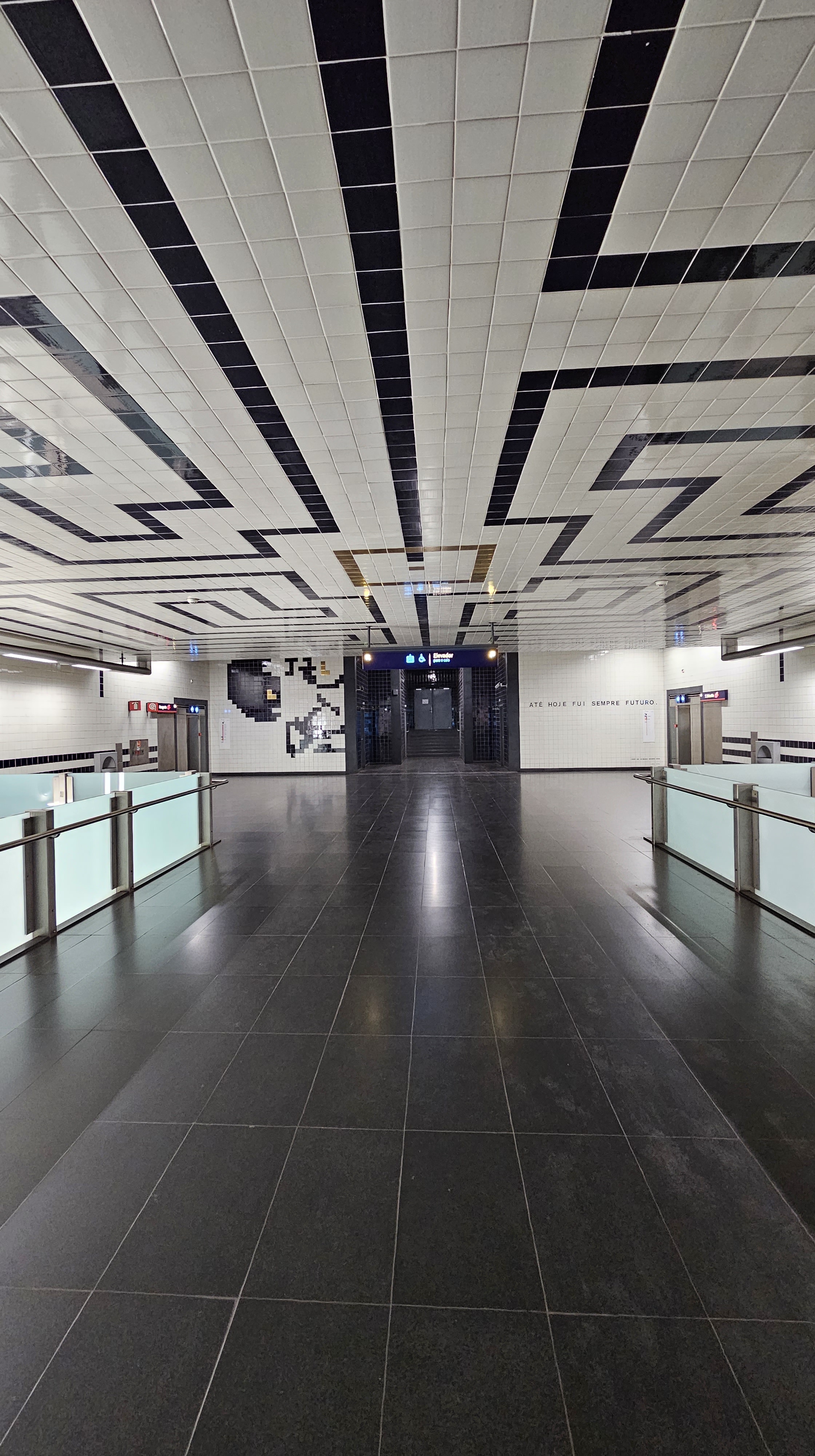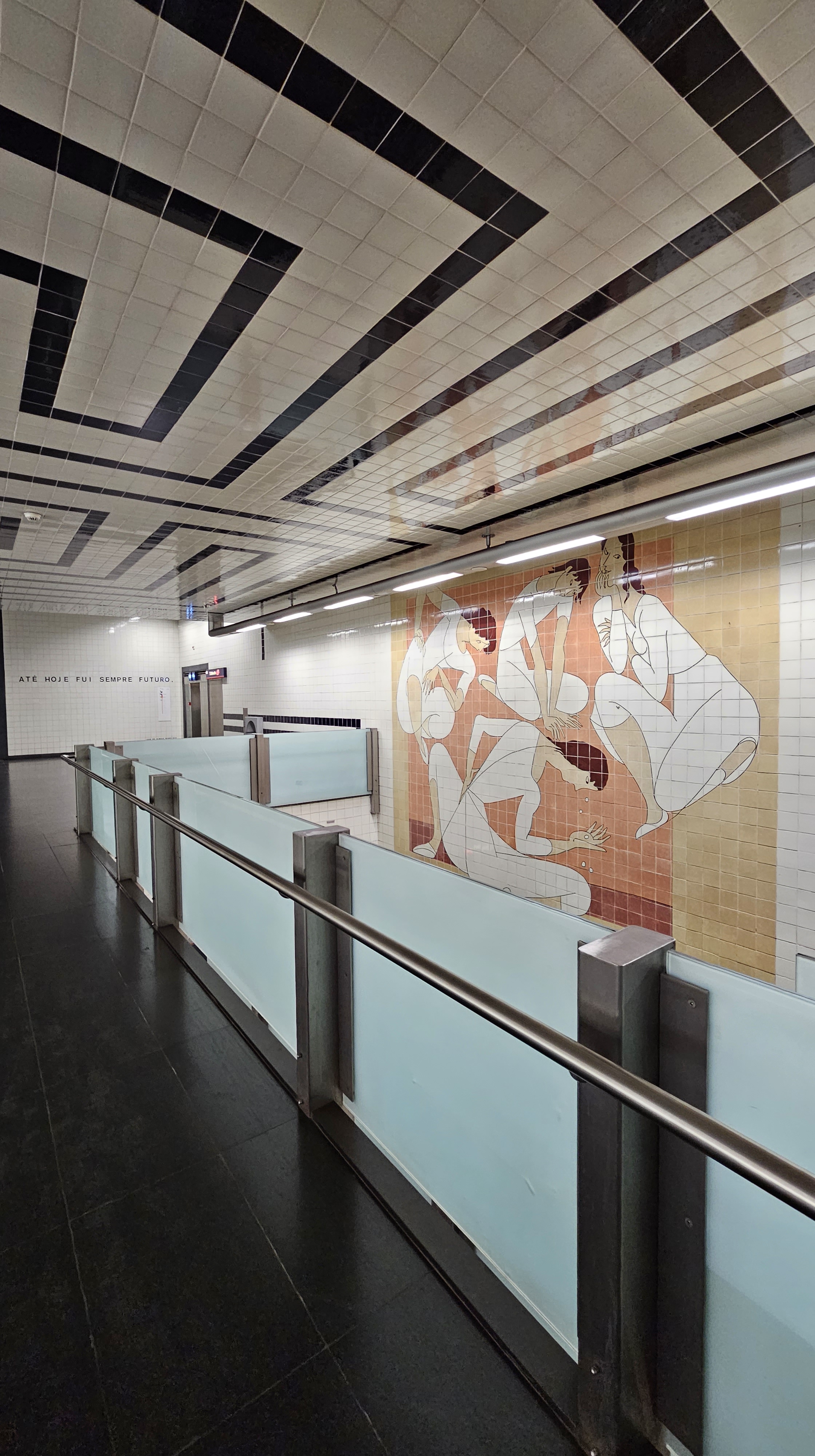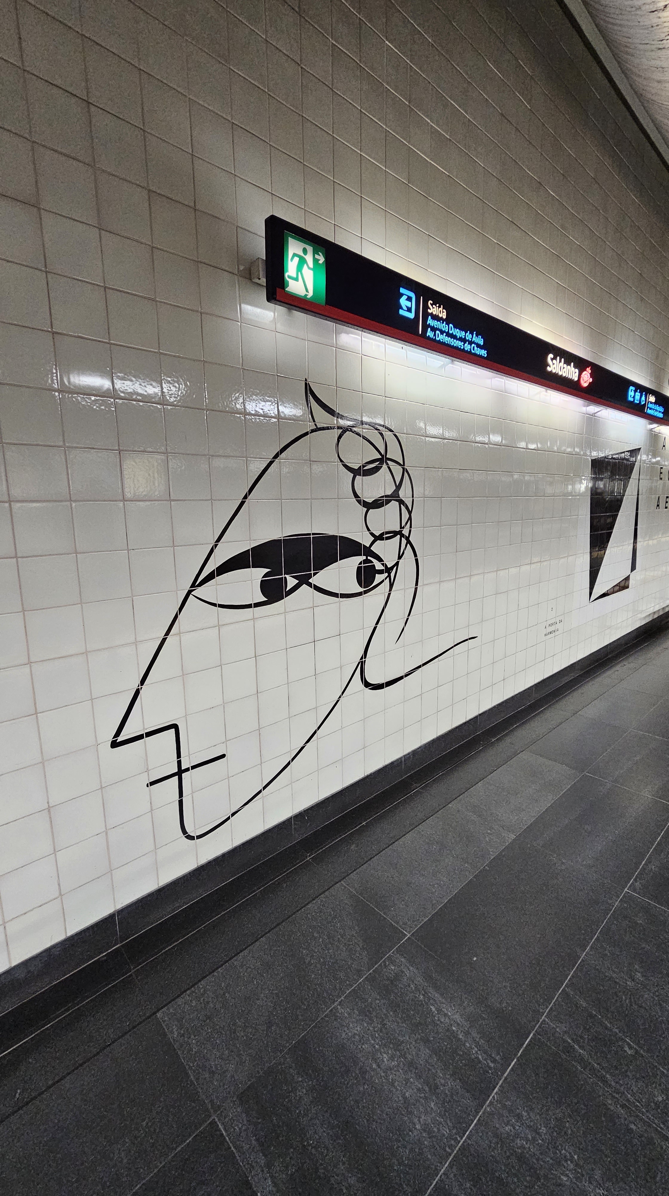 Na onze versnapering bij Versailles stappen we niet weer op de metro bij Saldanha, maar lopen we naar het metrostation Picoas. Eén halte verderop. Dit station van de gele lijn is geopend op 29 december 1959. Het is gelegen aan de kruising van de Avenida Fontes Pereira de Melo en de Rua Tomás Ribeiro. Het station heeft tegeltableaus van kunstenaars Maria Keil en van Martins Correia.