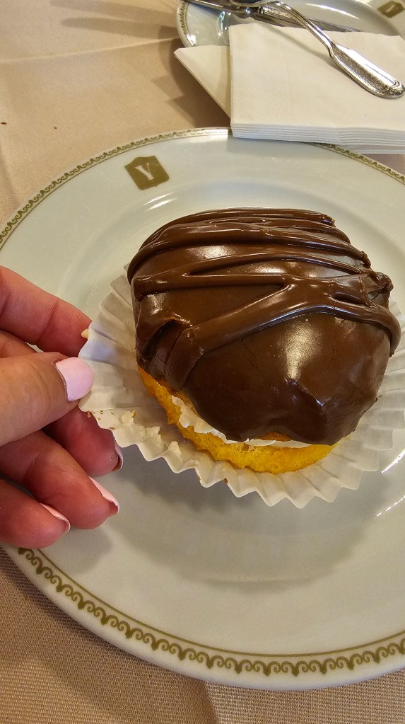 Uit alle lekkernijen wijs ik er een aan die me doet denken aan een Bossche bol. Later vertelt de ober dat dit hun specialiteit is. Dus voor wie trek heeft in iets Brabants: in Lissabon kun je aan je trekken komen. Alleen: deze bol heeft iets extra’s. Die laat een rumsmaak achter. Heerlijk!