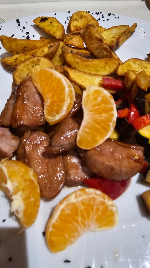 Via het nauwe steegje belanden we bij een deur, waar een trap ons naar een eerste verdieping leidt. In een plezierige ruimte met wat zachte, aangename muziek op de achtergrond, eten we goed voor zo’n twintig euro per persoon. Geen slechte keus dus dit restaurant Palhinhas Gold. We worden bediend door een alleraardigst Oekraïens meisje, dat in een vorig leven muziek studeerde en zich om de zin verontschuldigt voor haar gebrekkige kennis van de Portugese taal.