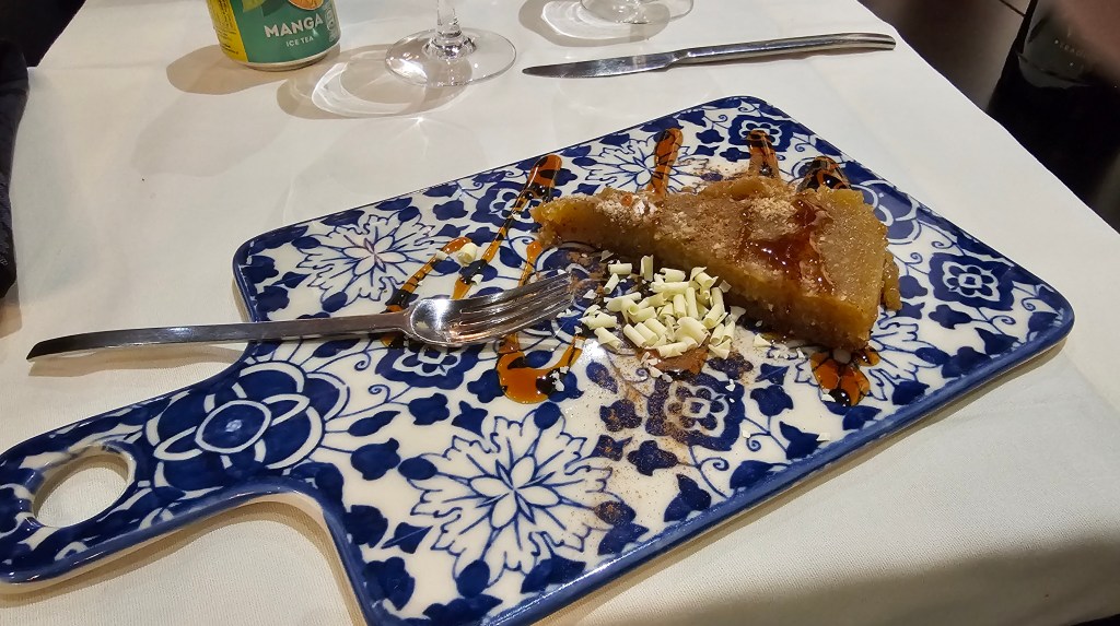 En precies om dat luidruchtige zijn wij ergens anders gaan eten. Met een ietwat dove in ons midden is kabaal niet wenselijk als we een normaal gesprek willen voeren. Tot onze verrassing worden we door ons gezelschap een nauw steegje ingeleid. “Hoe kan hier nauw een behoorlijk restaurant zitten?”, denk ik nog. Ondertussen krijg ik een appje binnen. Mijn moeder. Die heeft ineens spijt dat ze toch niet mee is gegaan. Quim Barreiros treedt op, appt ze me jaloers.