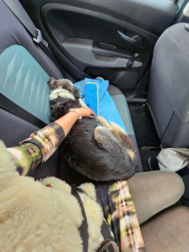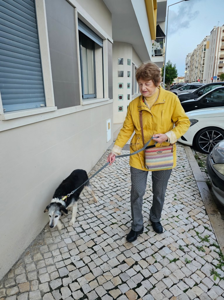 Rocco is nu dik een week bij mijn moeder. Volgens ons is Rocco stokdoof en opstaan gaat enorm stroef, maar zodra hij staat, kwispelt hij. Blaffen doet hij nauwelijks en voor een vondeling, die lang in het asiel heeft gezeten, doet hij het fantastisch wat zijn behoeftes betreft.