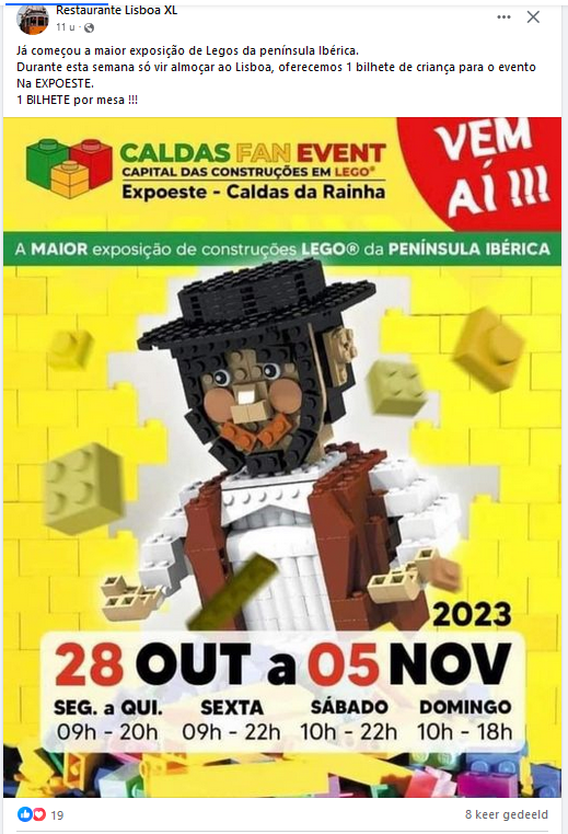 Sinds maandag lees ik op de socials van het enorme buffetrestaurant Restaurante Lisboa XL, dat op het industrieterrein gevestigd is, dat ze per tafel één kaartje voor een kind geven als je er komt eten: