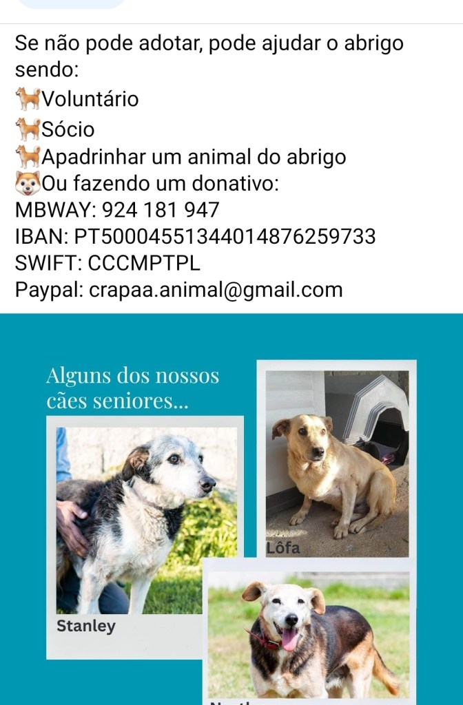 Voor mensen in Nederland die een hondje als petekind willen adopteren, hier de link : CRAPAA (klikken op ‘apadrinhar, to sponsor’). Je kunt natuurlijk ook op hun Facebook- of Instagrampagina kijken om te zien welke hondjes nu in het asiel zitten en dringend een liefdevol tehuis zoeken. Er zitten echt een paar lieve snuitjes tussen!