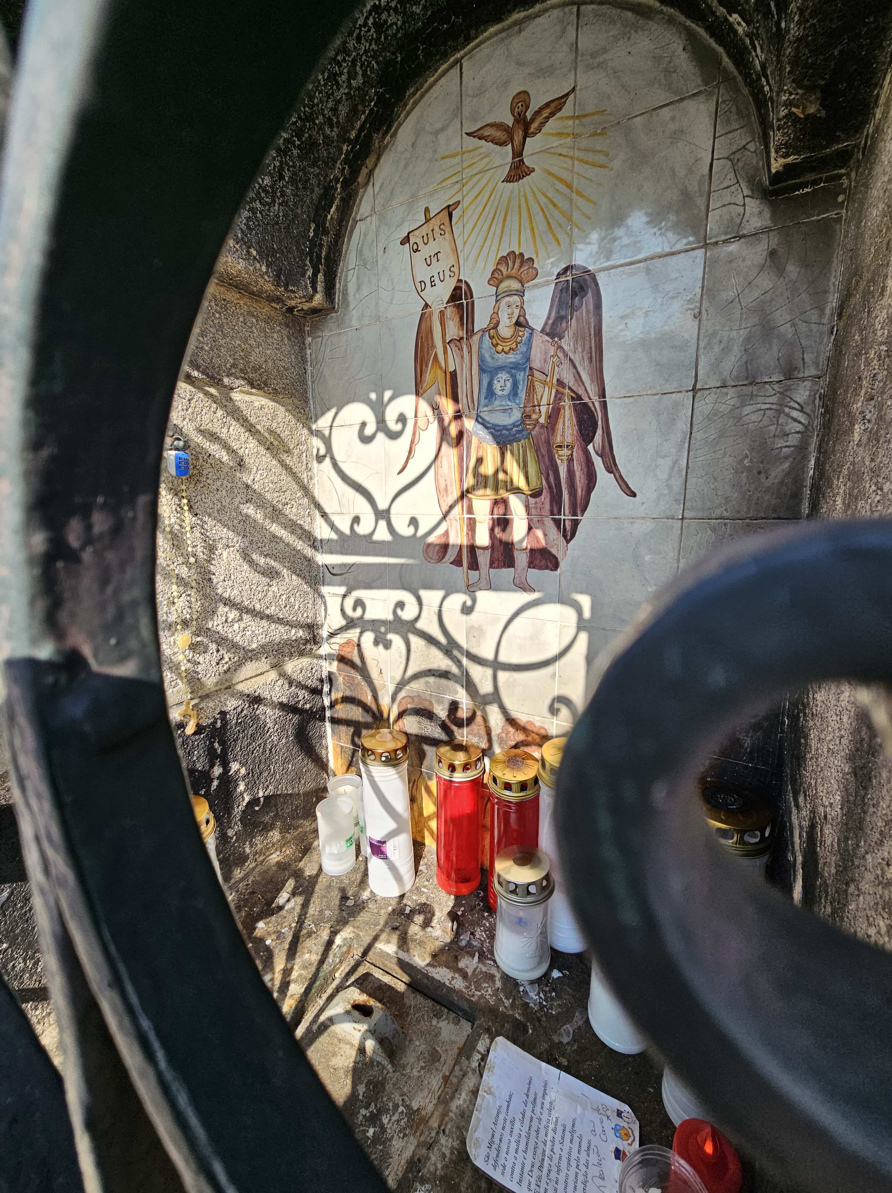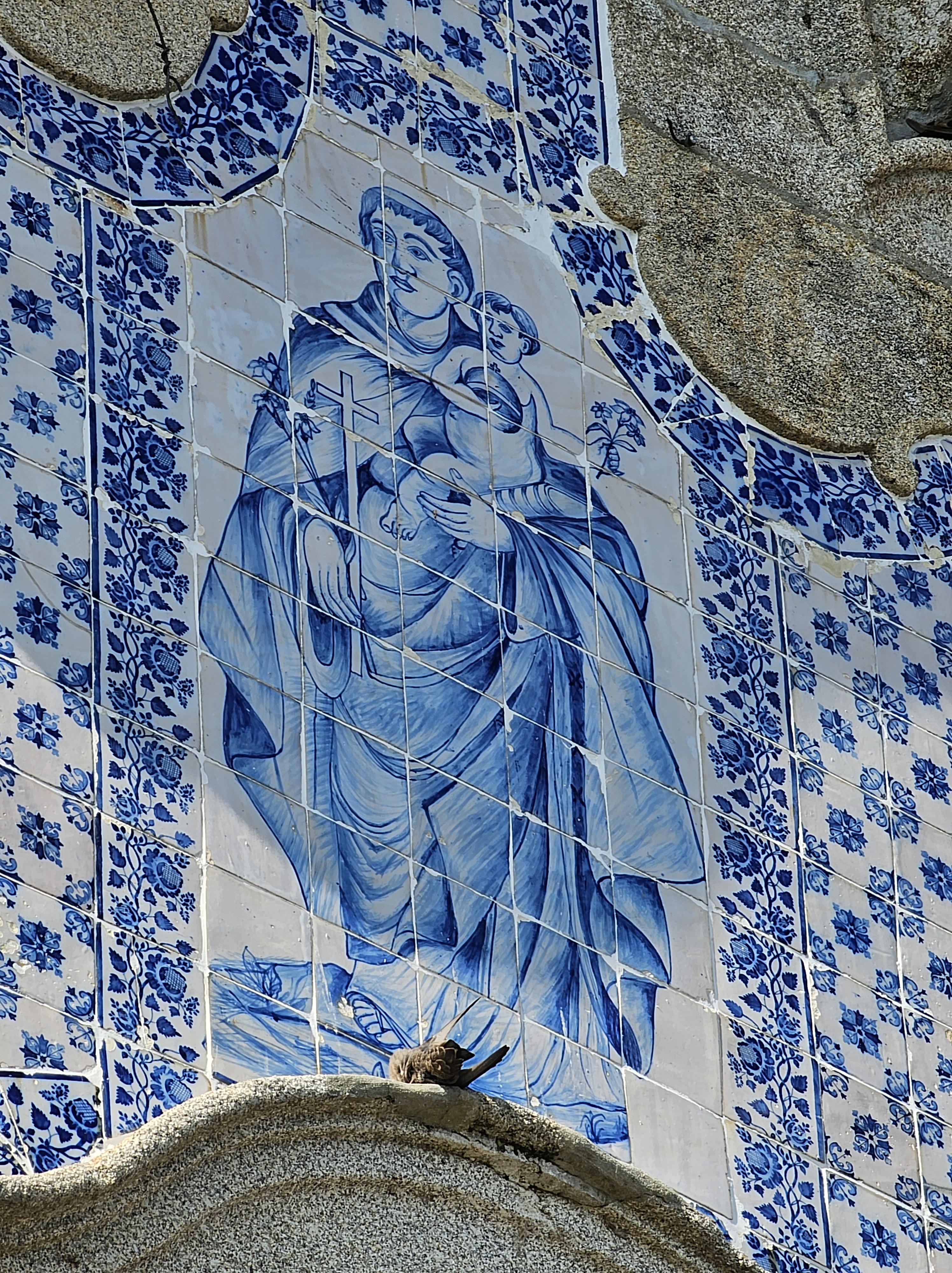 Maar terug naar de adonissen. Op wat Romeinen in beton gegoten aan de oever van de rivier de Lima na, kan ik me het mannelijk schoon niet heugen. Ook niet in Braga, trouwens. Daar hebben we eigenlijk alleen maar oog voor kerken, trappartijen en eten, veel. Op de Heilige Antonius na, die toch verdraaid veel op foto’s wordt gezet, zie ik geen mannen, behalve de mijne en Chris. Knappe mannen, ik zou niet anders durven beweren, maar toch geen Portugese. Over hun verdere verrichtingen laat ik me niet uit, want er zijn dingen die je nu eenmaal niet bloot hoort te geven. Ten minste, in mijn wereld dan, maar ja, ik ben misschien een tikkeltje té Portugees. Of ik heb te lang onder een steen gelegen, zo u wilt.