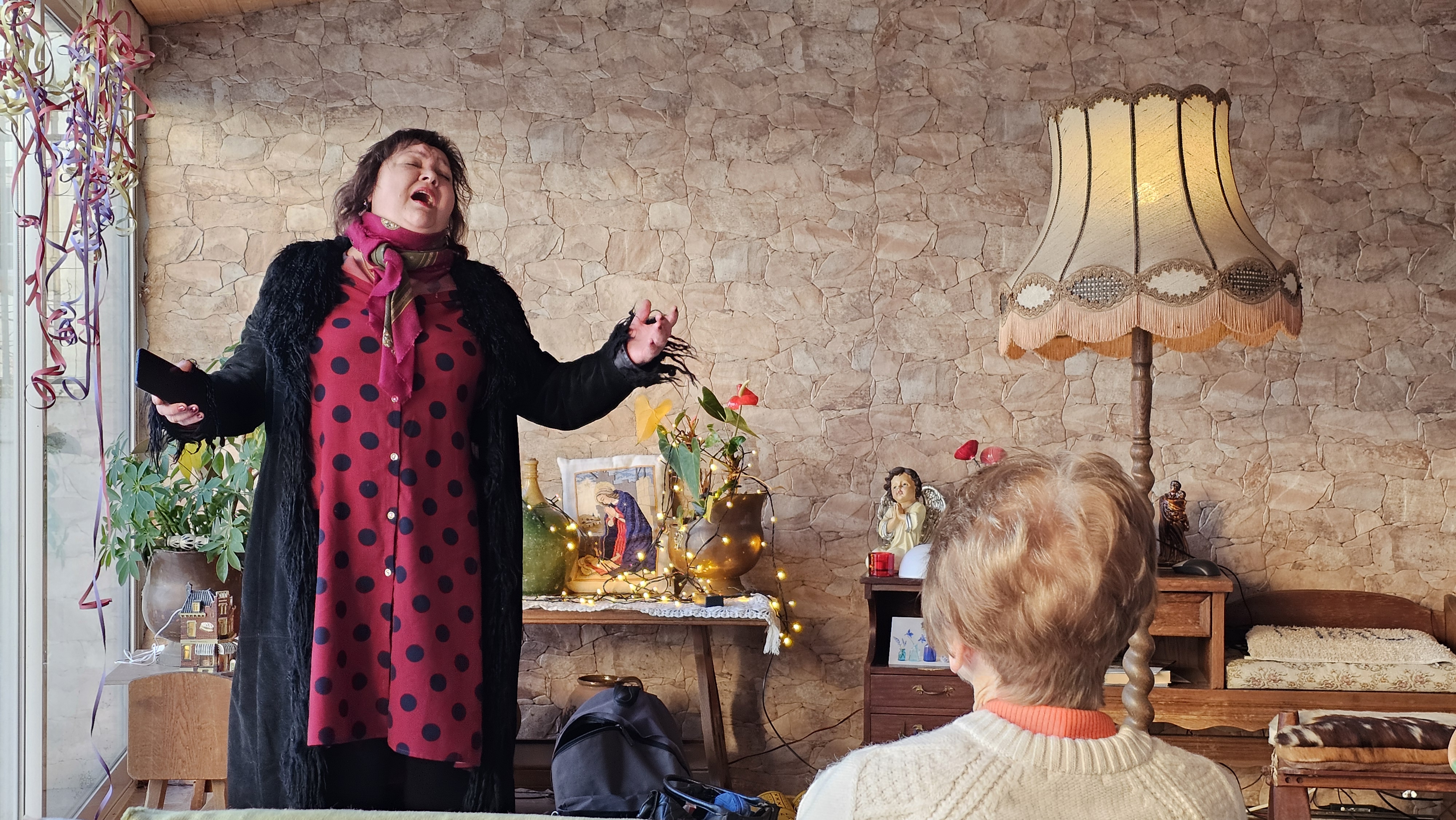 Mijn moeder viert op 20 januari haar vierentachtigste verjaardag en krijgt als verrassing (ook de mijne) een privéconcert van een Oekraïense operasopraan. Tijdens mijn boodschappenrondje op zaterdagmorgen 20 januari hoor ik in de Rua das Montras een vrouw zingen. Spontaan besluit ik haar te vragen om ’s middags voor mijn jarige mama te zingen én dat wil ze wel. Als we deze dame later googelen blijkt ze in 2018 in de finale van Portugal Got Talent te hebben gestaan en zelf heeft ze honderduit verteld of alle concertzalen in de Oekraïne waar ze heeft gezongen. Wat een eer dat ze wilde komen!