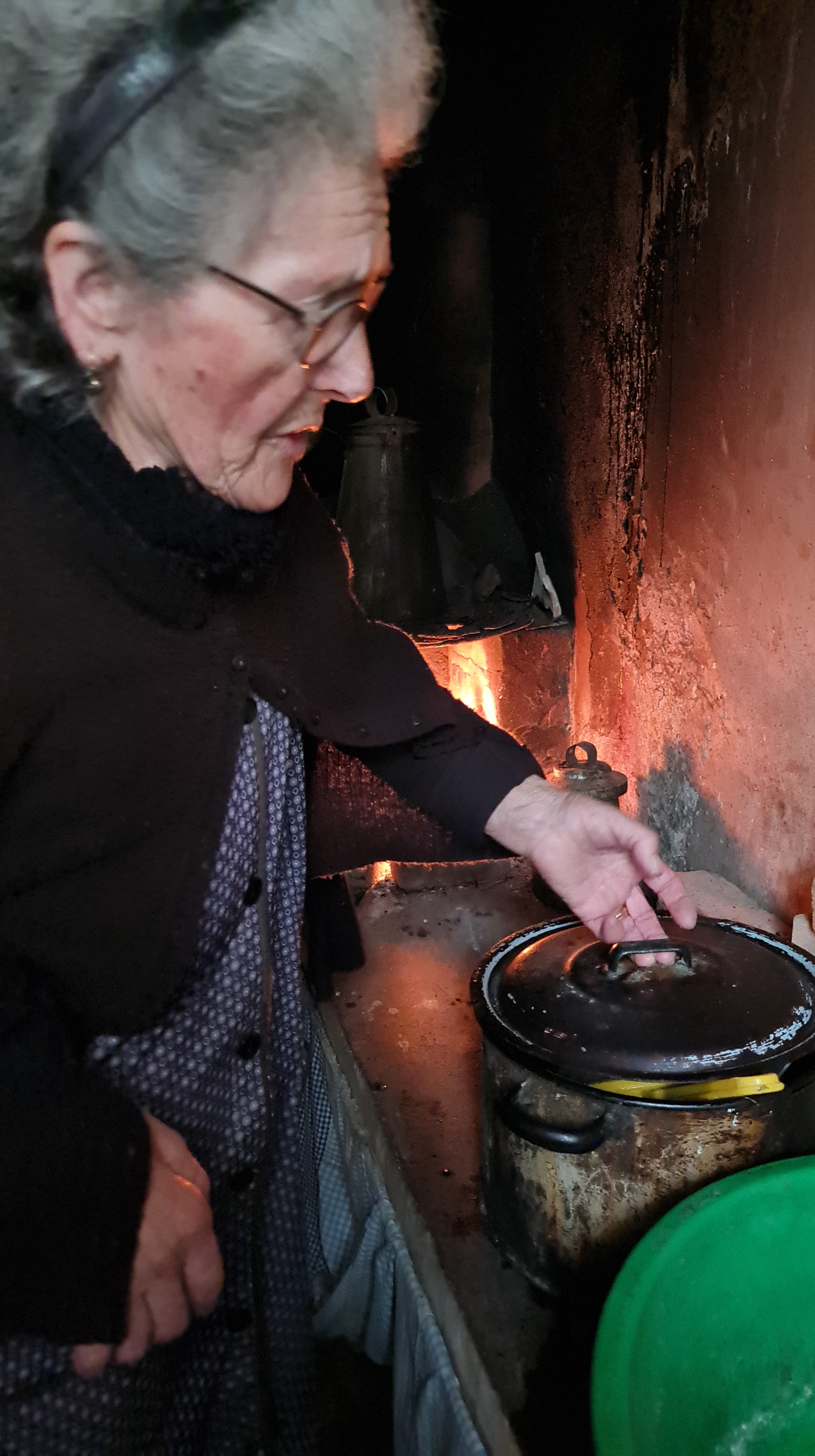 Bij de oude vrouw op het schilderij van Israëls herken ik mijn overgrootmoeders, grootmoeder en mijn tante. Hoe vaak ben ik ze niet zó tegengekomen: bij het vuur met een pan of zich warmend, in een zwartgeblakerd vertrek met nauwelijks lichtinval. Ik heb nog een foto van oudejaarsdag 2023 waar het contrast tussen heden en verleden niet groter kan zijn. Mijn tante Tia lekker aan het koken en ikzelf strak in de lak voor het réveillon. Voor wie oog voor detail heeft, komt Jozef Israëls’ werkelijkheid in Portugal nog tegen.