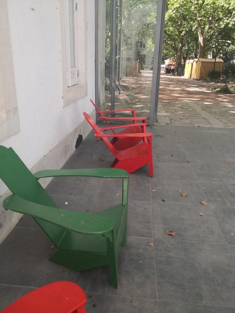 Ik vraag me altijd af in hoeverre Portugese kunstenaars bekend zijn met schilders uit het noorden van Europa. Zo lijken de stoelen in het park op de stoelen van Rietveld.