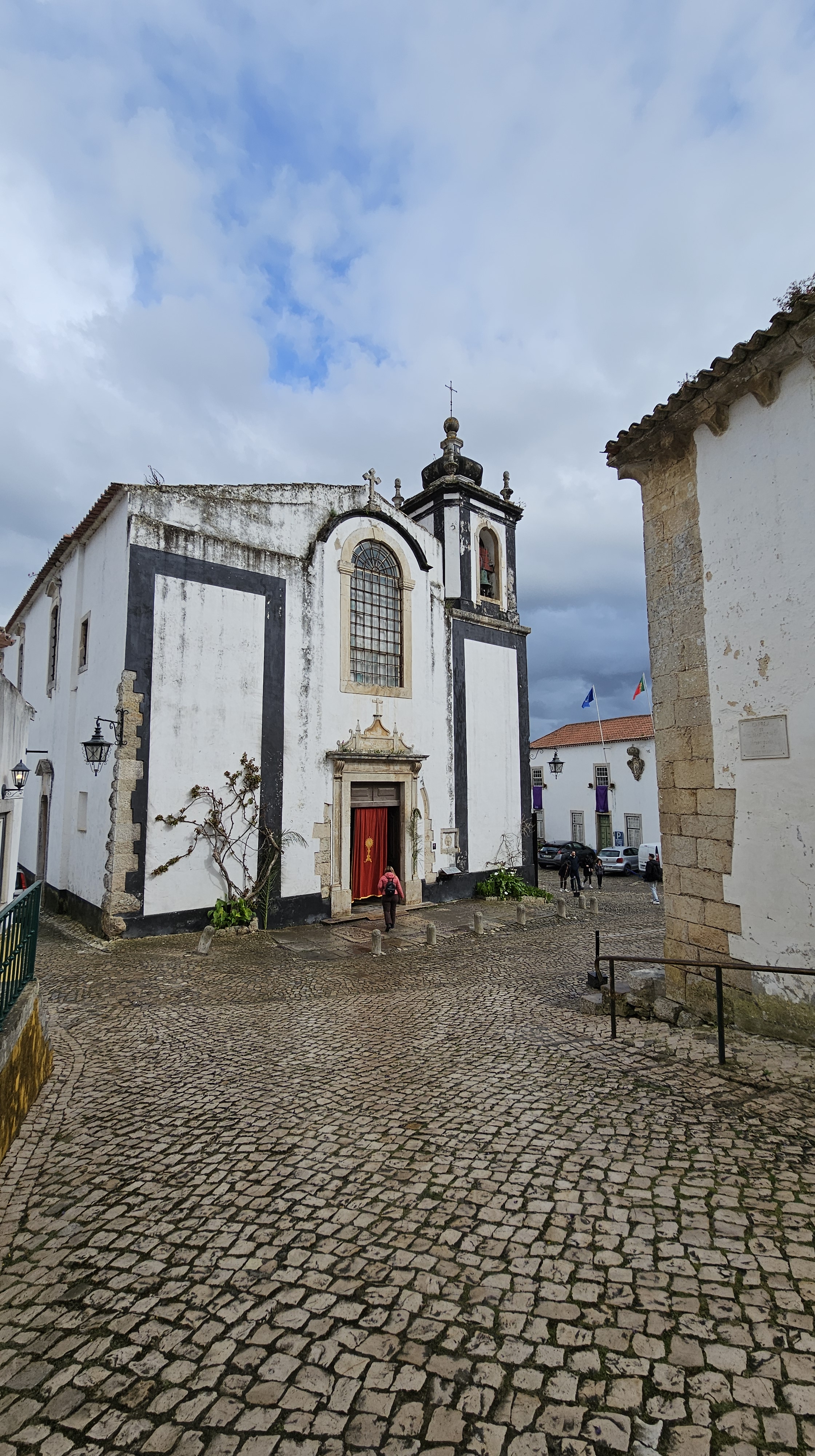 Het meest bizarre is: ik heb de wolken gefotografeerd waaruit de klap kwam. Eigenlijk was het plan om ’s avonds naar de Enterro do Senhor (De Begrafenis van de Heer) te gaan, maar we besluiten om ’s middags al even langs de kerken in Óbidos te lopen, zodat ik met daglicht de nissen bij de kerken kan fotograferen.