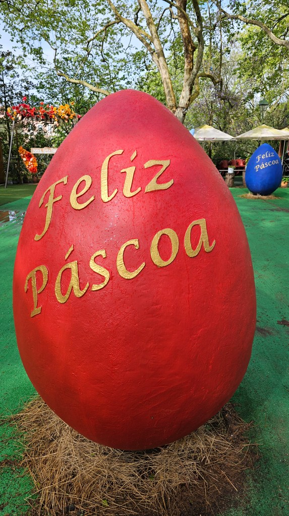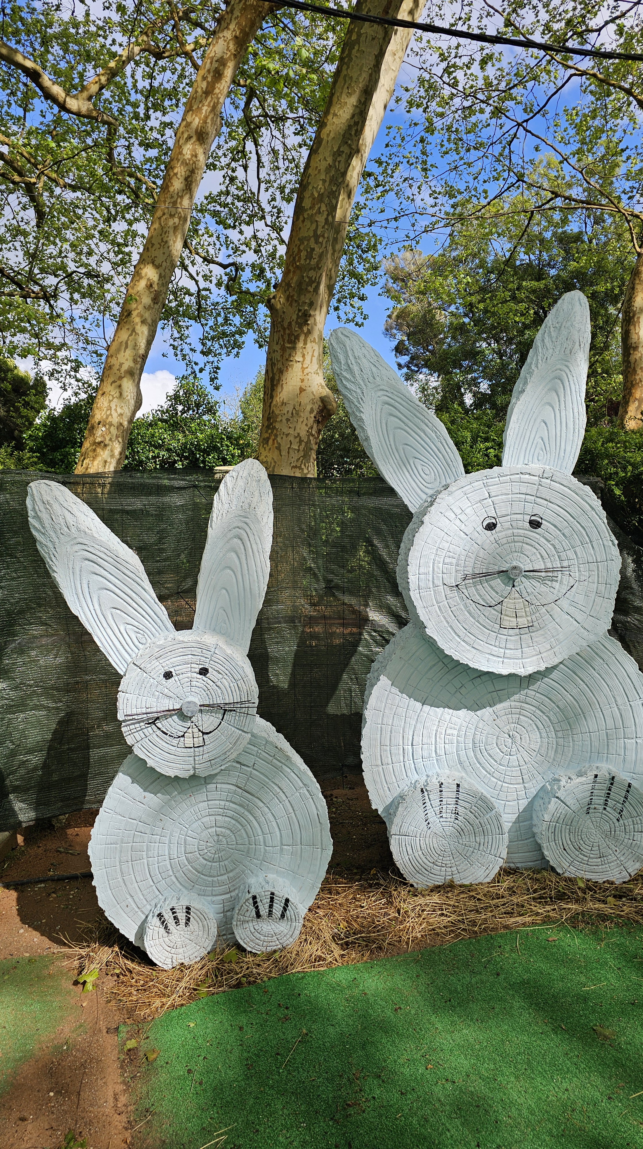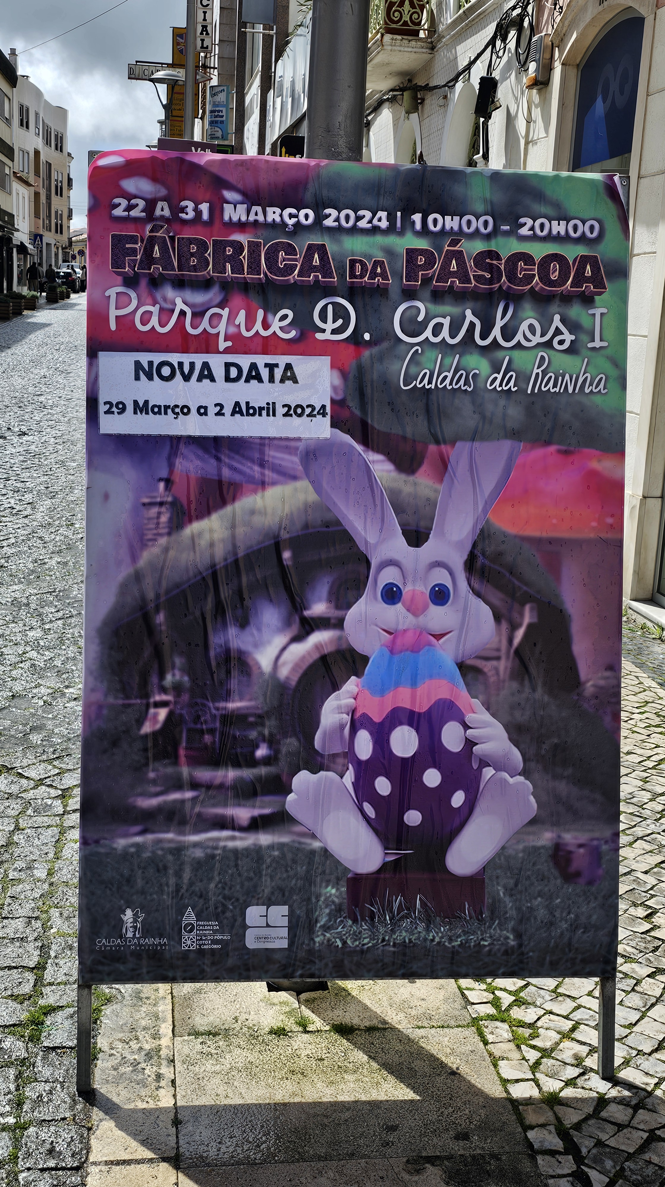 Op zaterdagochtend moet ik al vroeg in Caldas da Rainha zijn en de zon vergezelt me op mijn gebruikelijke wandeling door het park. Tot mijn verrassing zie ik paashazen en stalletjes bij het gedeelte vlakbij de tennisbaan bij het café Smash. Wat leuk: hier worden voor kinderen allerlei activiteiten georganiseerd. Enthousiast app ik mijn moeder: vanmiddag gaan we deze vrolijke paashazen, eieren en versieringen eens goed bekijken. Zo gezegd, zo gedaan! Dus mocht je in de buurt zijn, deze “Fábrica da Páscoa” (Paasfabriek) in het Parque Dom Carlos van Caldas da Rainha is er nog tot 2 april.