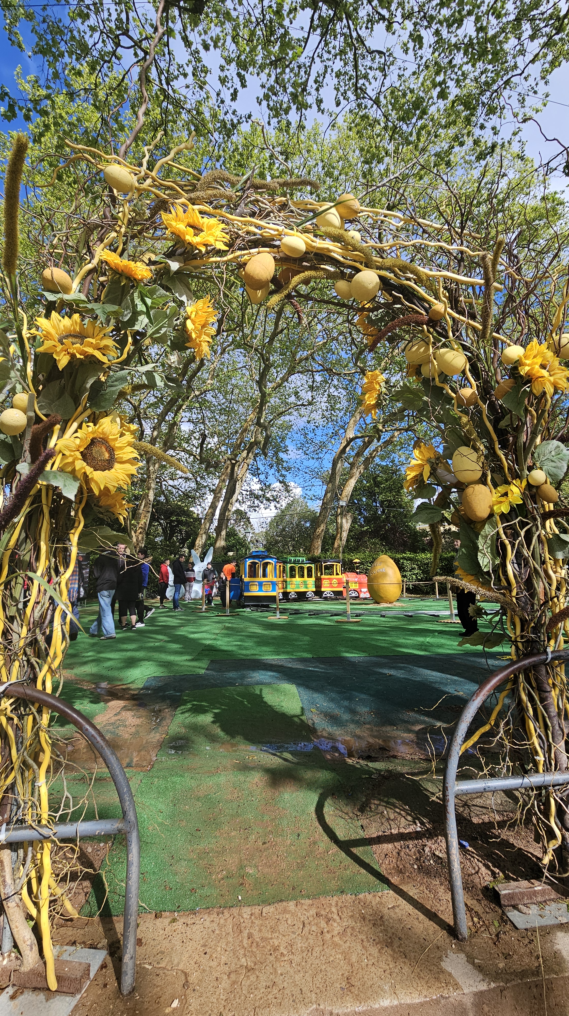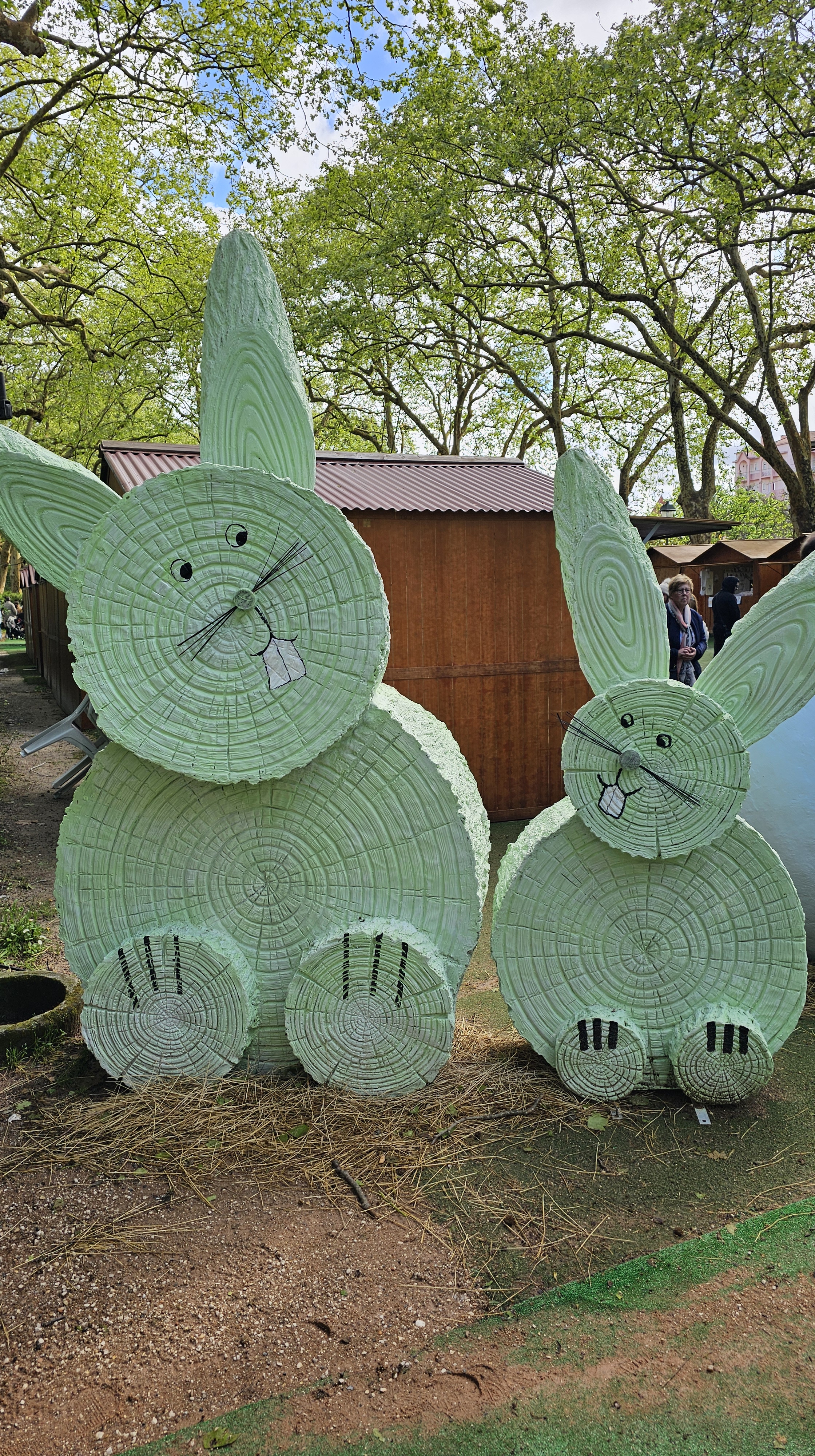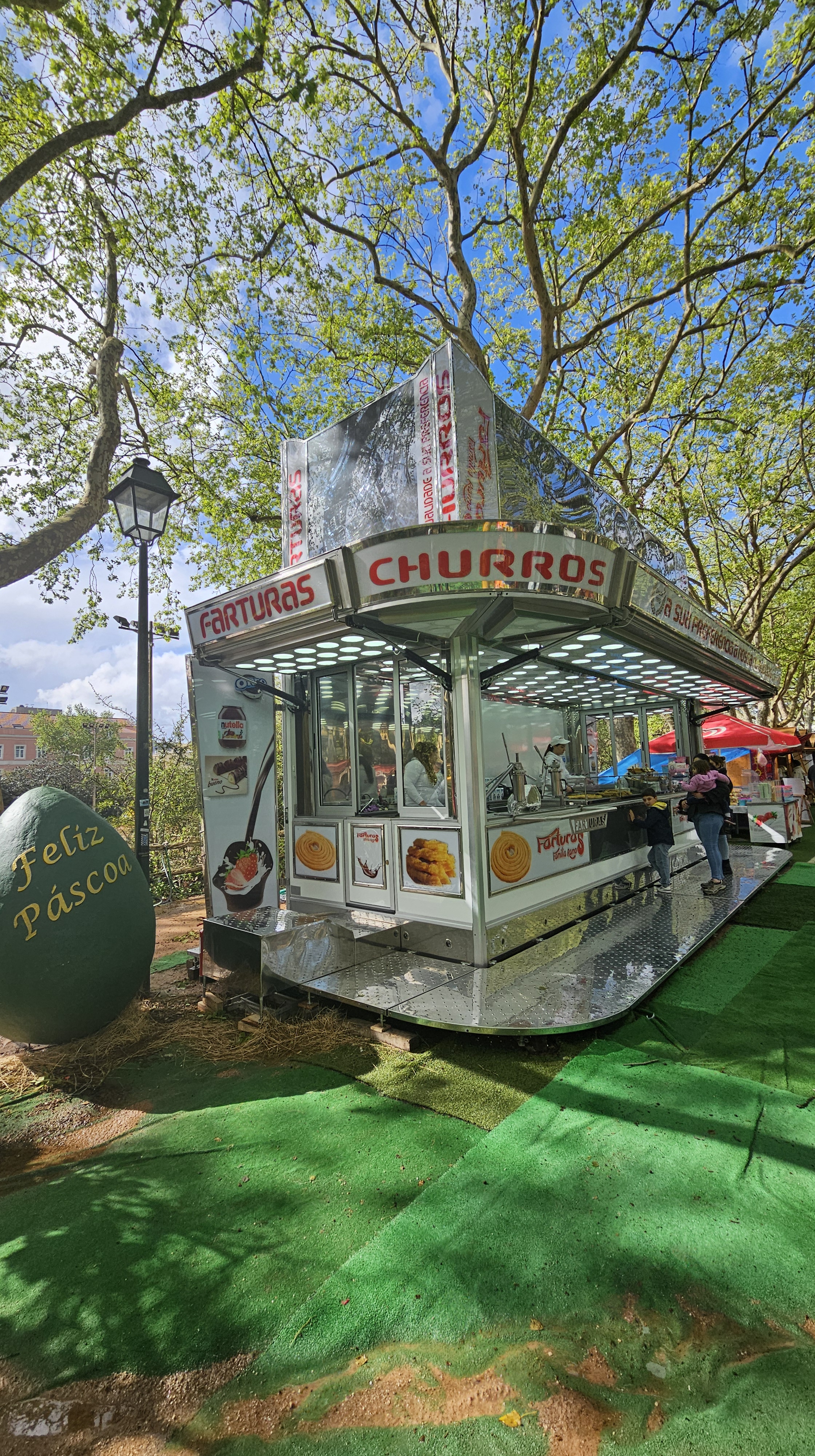 Op zaterdagochtend moet ik al vroeg in Caldas da Rainha zijn en de zon vergezelt me op mijn gebruikelijke wandeling door het park. Tot mijn verrassing zie ik paashazen en stalletjes bij het gedeelte vlakbij de tennisbaan bij het café Smash. Wat leuk: hier worden voor kinderen allerlei activiteiten georganiseerd. Enthousiast app ik mijn moeder: vanmiddag gaan we deze vrolijke paashazen, eieren en versieringen eens goed bekijken. Zo gezegd, zo gedaan! Dus mocht je in de buurt zijn, deze “Fábrica da Páscoa” (Paasfabriek) in het Parque Dom Carlos van Caldas da Rainha is er nog tot 2 april.