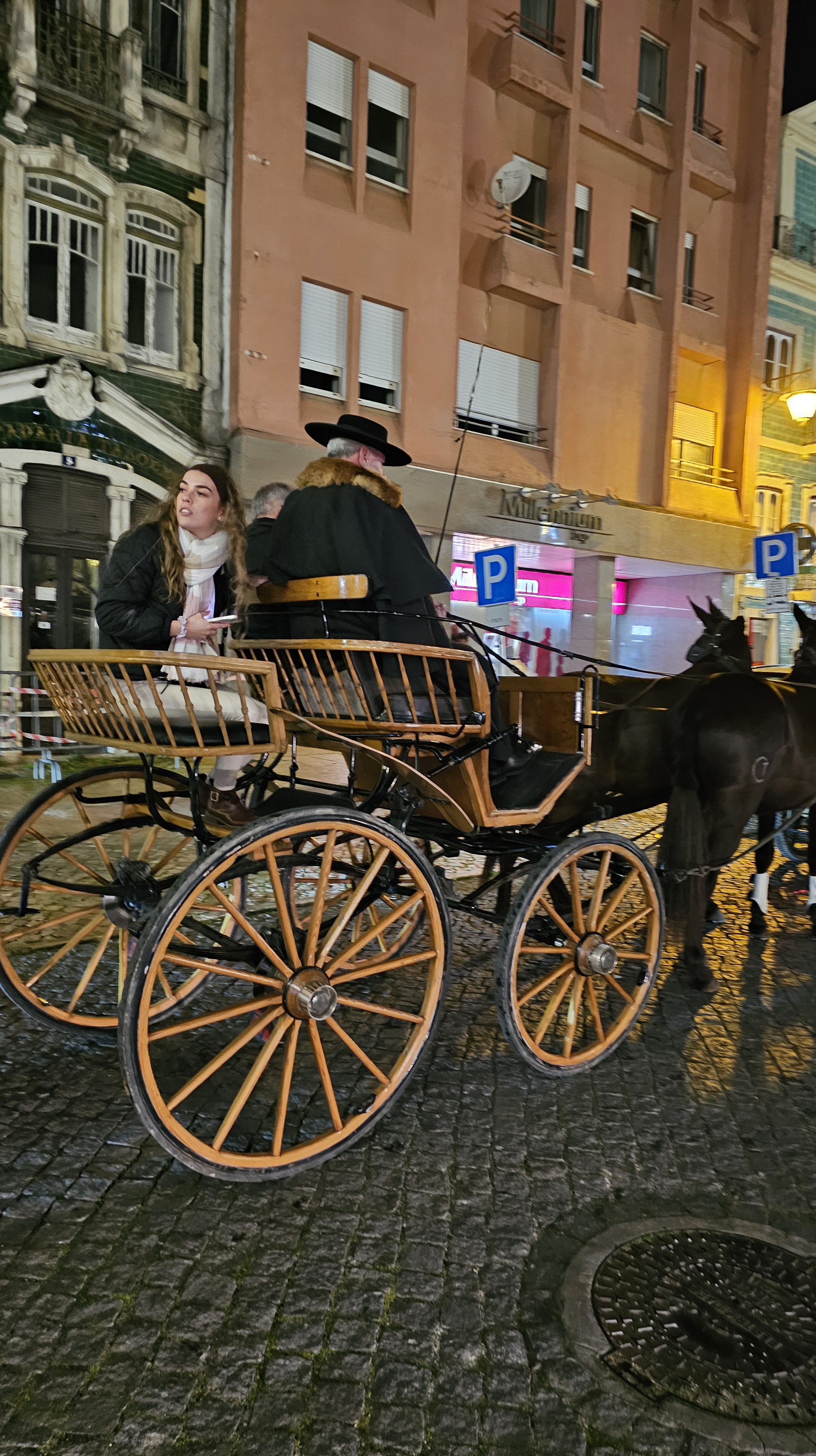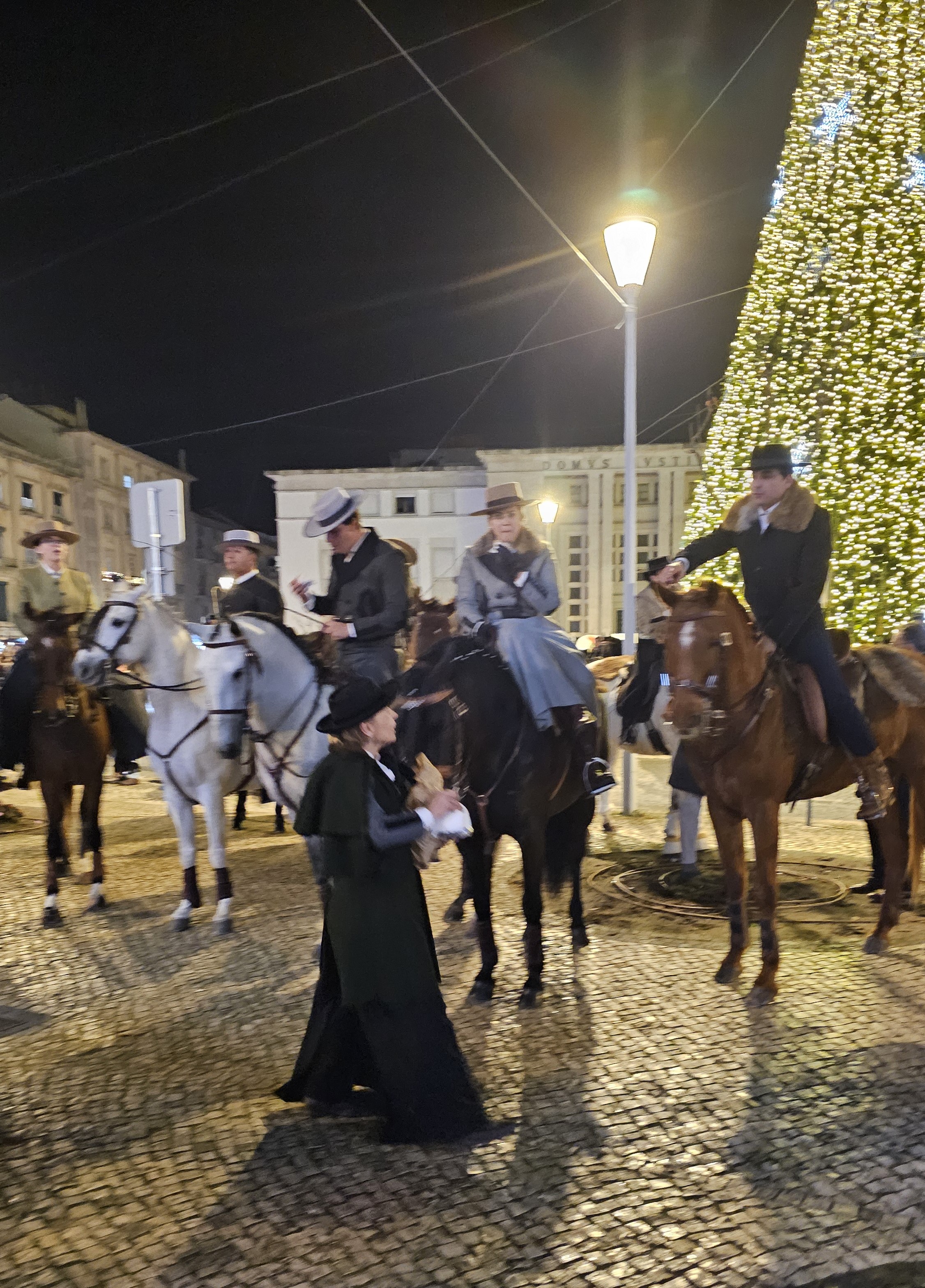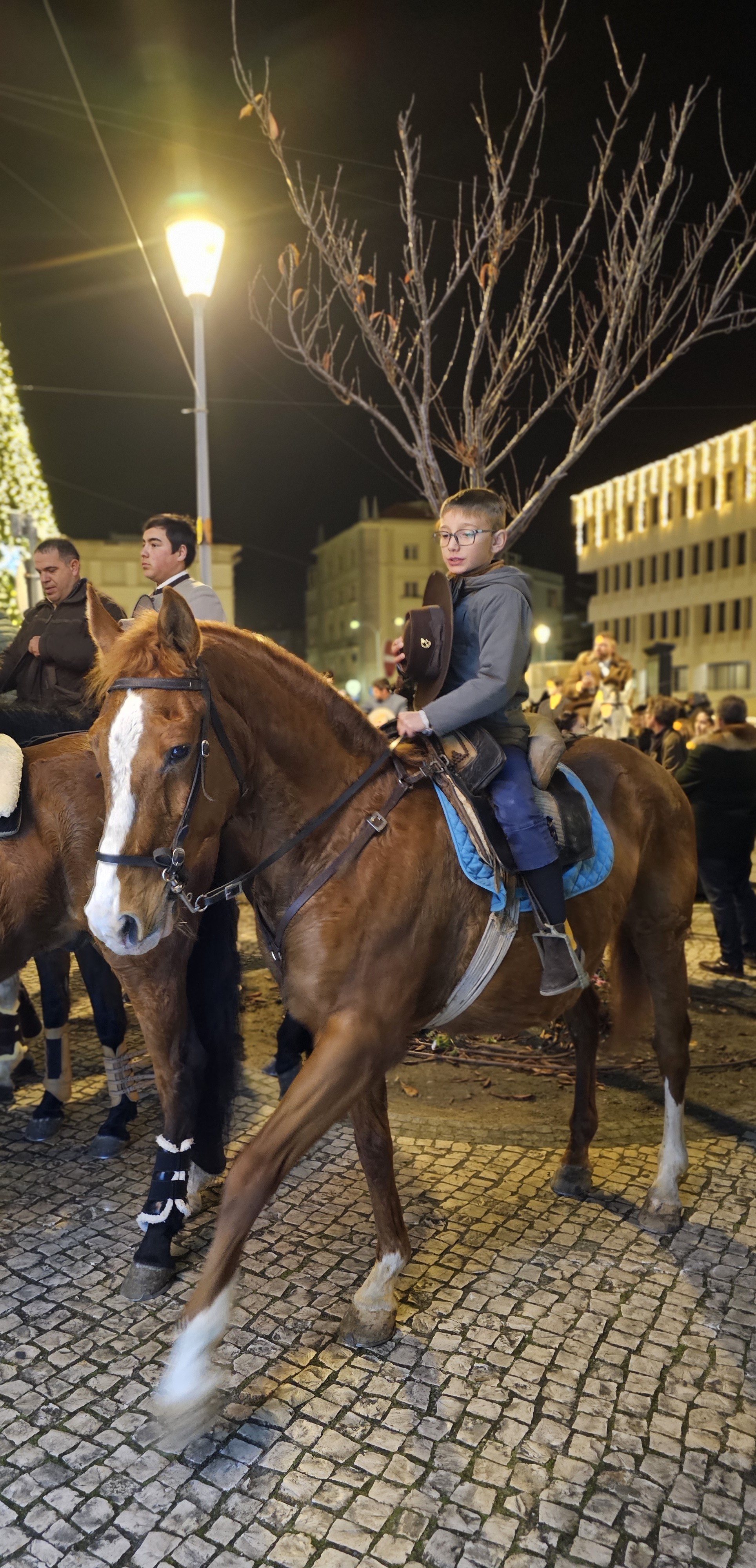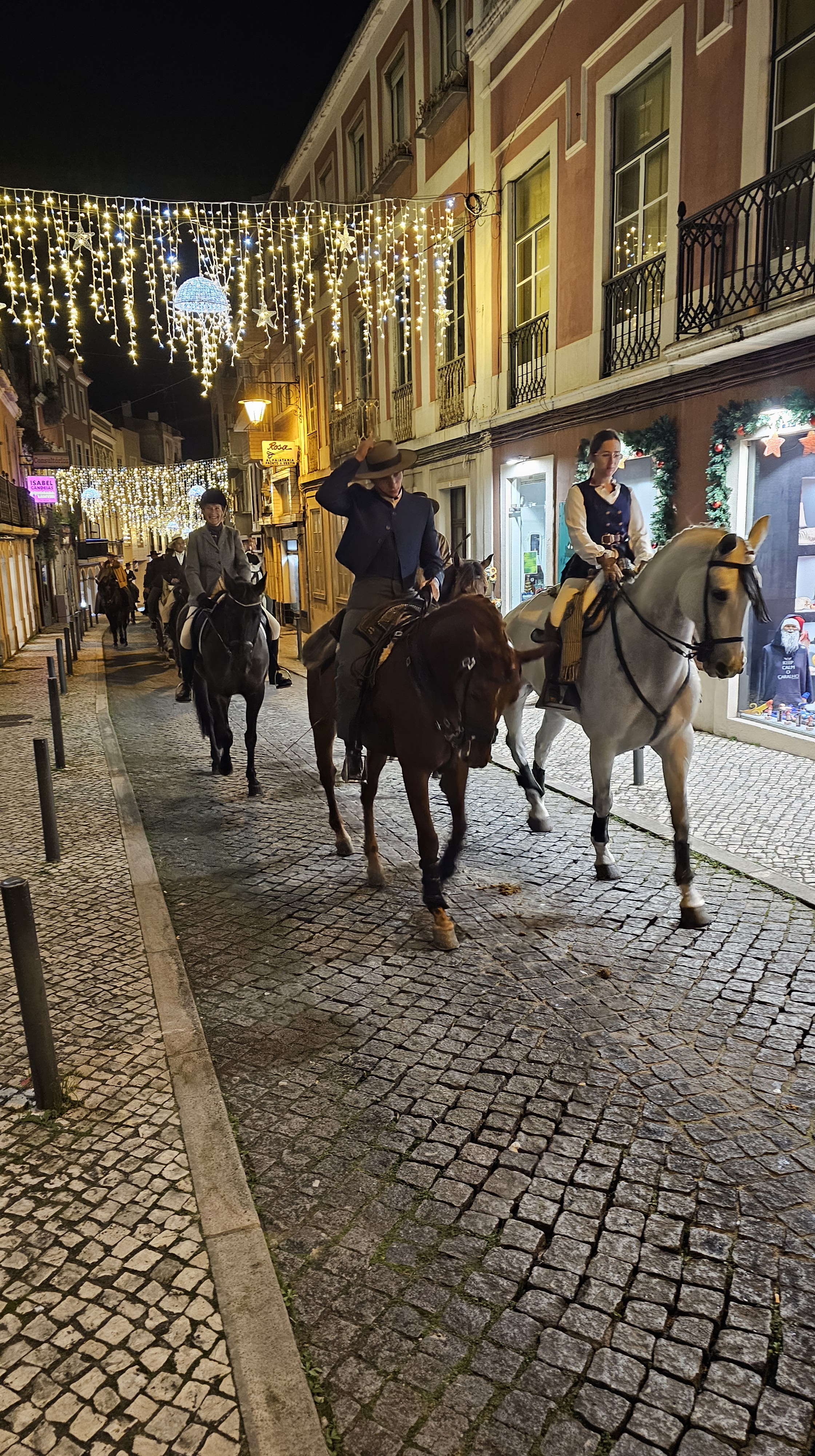 In Caldas da Rainha zijn we de kerstperiode met een Passeio Equestre geëindigd, een tocht met paarden en koetsen door de stad. Deze tocht vindt de laatste jaren rond Driekoningen plaats. Dit keer afgelopen zaterdag 4 januari. Ik vind dat dit evenement veel meer bekendheid mag krijgen. Het is magisch: een prachtig verlicht stadje, ruiters in traditionele kledij en op het eind worden de paarden op het plein voor de kerk gezegend. Dát filmpje moet ik nog maken, maar ik laat jullie alvast zien hoe de stoet langs het plein met de dagelijkse groente- en fruitmarkt trekt.
