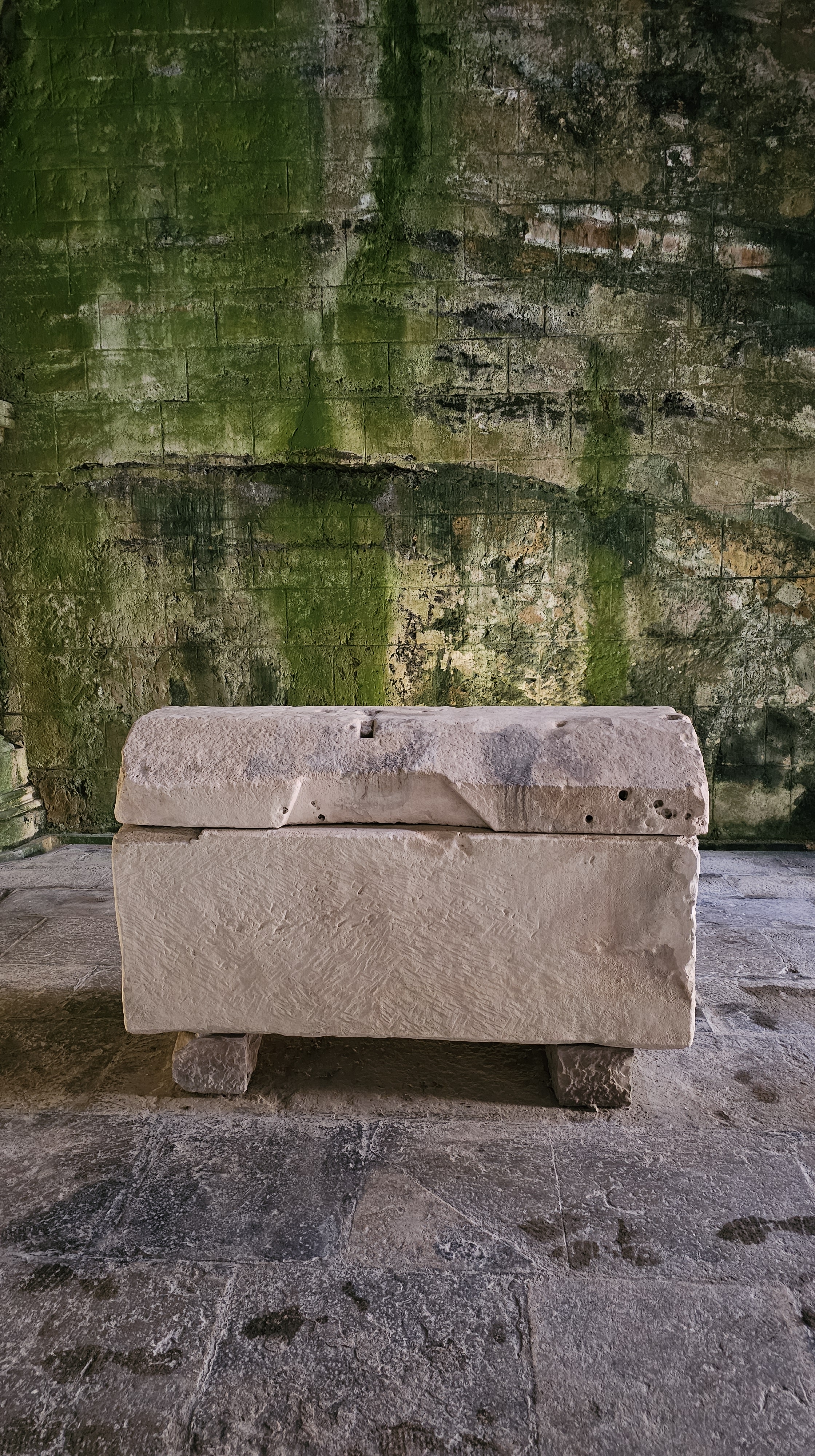 Sesnando stierf in 1091, na decennialang de regio bestuurd te hebben met visie en menselijkheid. Zijn graf, verscholen in een nis van de Sé Velha (oude kathedraal) van Coimbra, wordt zelden opgemerkt. Ik liep er aan voorbij, omdat het een tombe is zonder opsmuk. Eerlijk gezegd trokken de groene mossen op de stenen muren eerder mijn aandacht dan zijn tombe. Maar bij het lezen van het bijschift, dacht ik wel, hé, deze man verdient het dat ik me in hem verdiep!