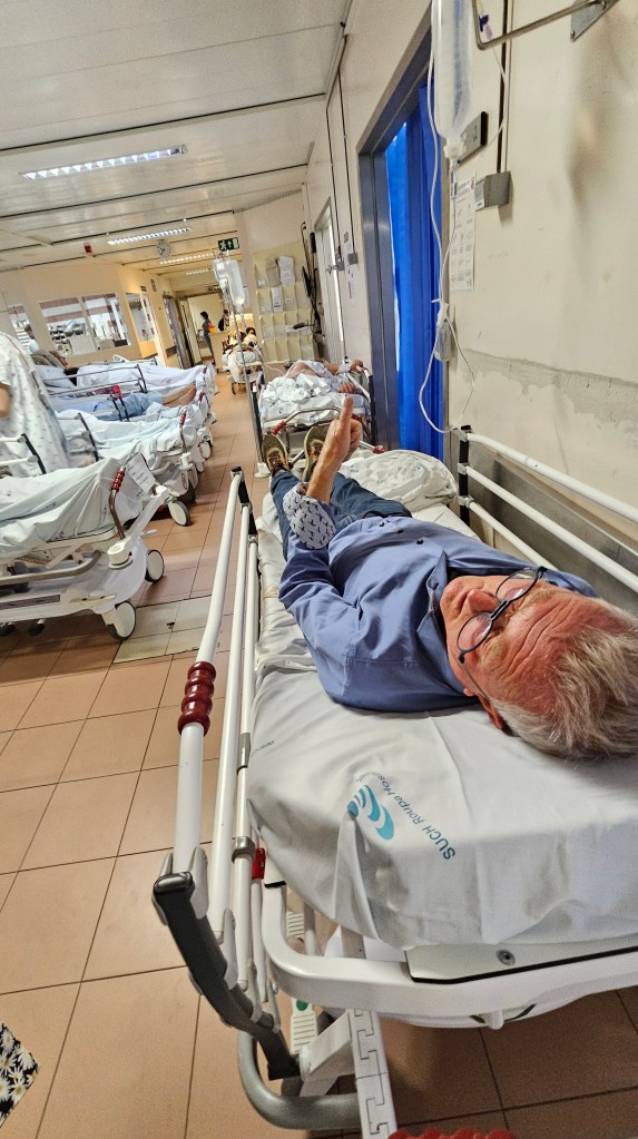 Op Bevrijdingsdag – geen officiële feestdag in Portugal – heb ik in een noodsituatie de ambulance moeten bellen voor onze Nederlandse vriend Joop. Hij voelt zich al dagen niet echt lekker en lijkt nu steeds zijn bewustzijn te verliezen. Wat daarna volgt, is meteen een intens inkijkje in de Portugese gezondheidszorg, vol geduld, improvisatie en opmerkelijke momenten.