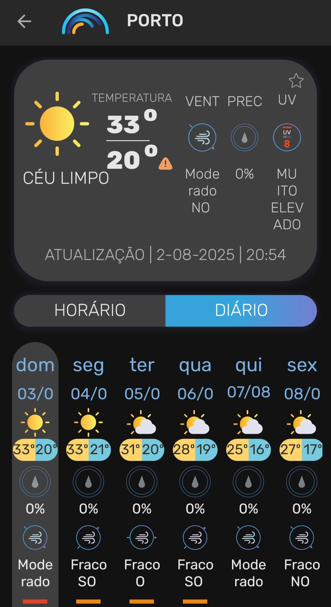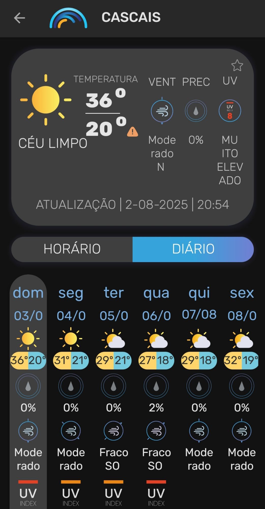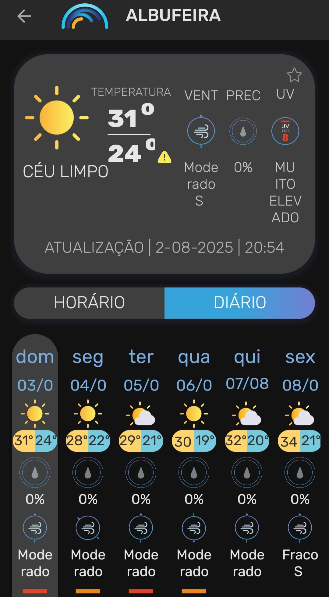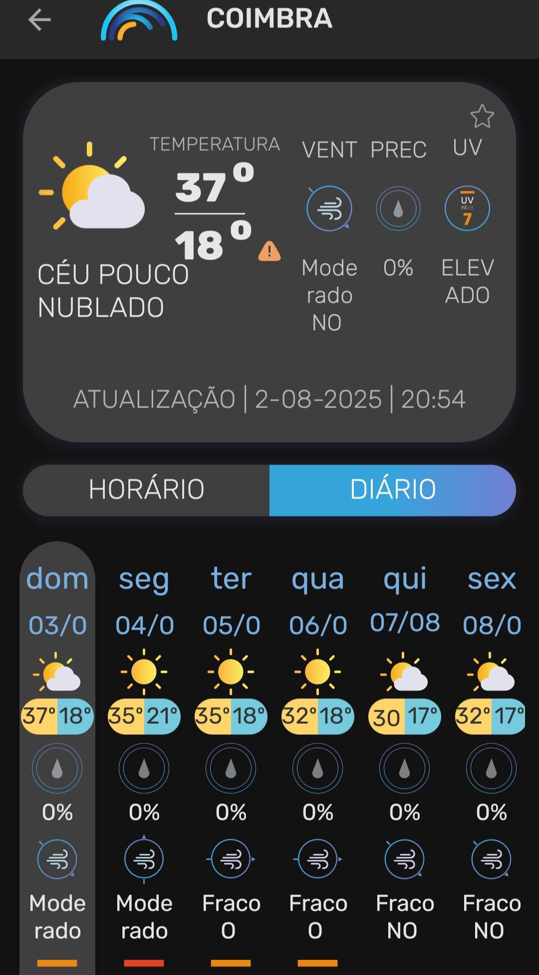 Vanaf zondag 3 augustus 2025 tot en met donderdag 7 augustus 2025 was heel Portugal, met uitzondering van het zuidelijke district Faro, onder een officieel hitte- en bosbrandwaarschuwing geplaatst. De temperaturen stegen in veel regio’s tot 36–40 °C, met uitschieters tot 44 °C in Alentejo, de Taag- en Douro-vallei . Ook ’s nachts koelde het nauwelijks af (er werd sprake van tropische nachten als de minimumtemperaturen tussen 20 °C en 25 °C blijven steken.
