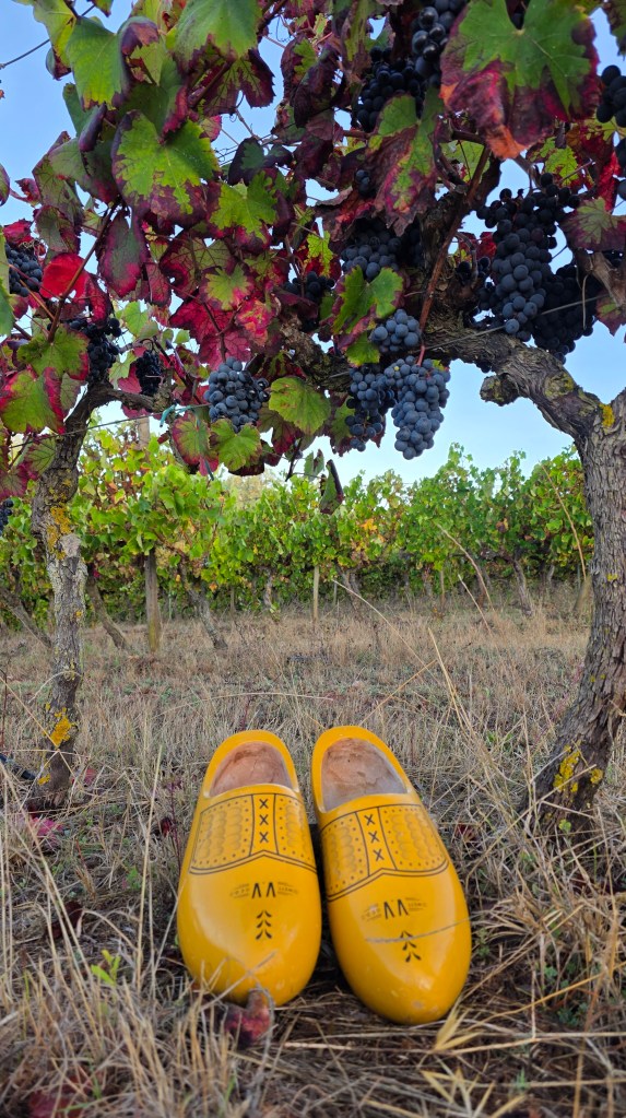 Ik denk dat het een topjaar wordt, niet omdat er nu zo bijster veel aan de ranken hing én ook niet omdat de everzwijnen wéér in de dagen voordat er geoogst moest worden hebben toegeslagen, maar simpelweg omdat de vreugde die we de hele dag hebben beleefd vast terug te voelen valt in het eindproduct: goede vrienden plus goede druiven = goede wijn!