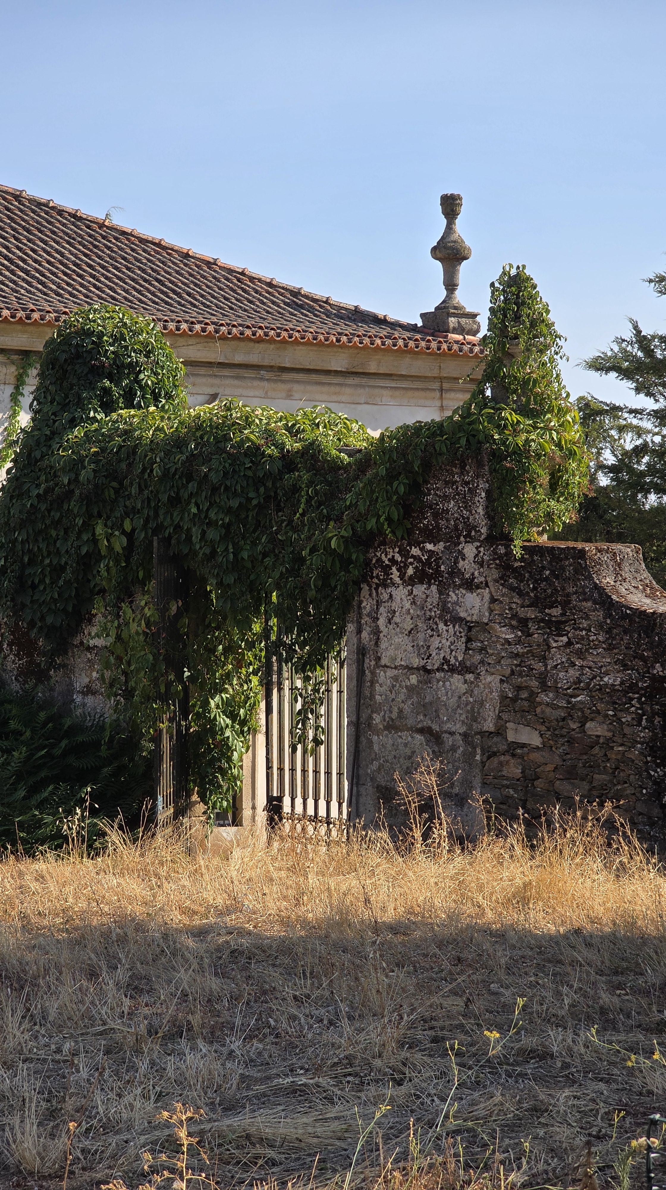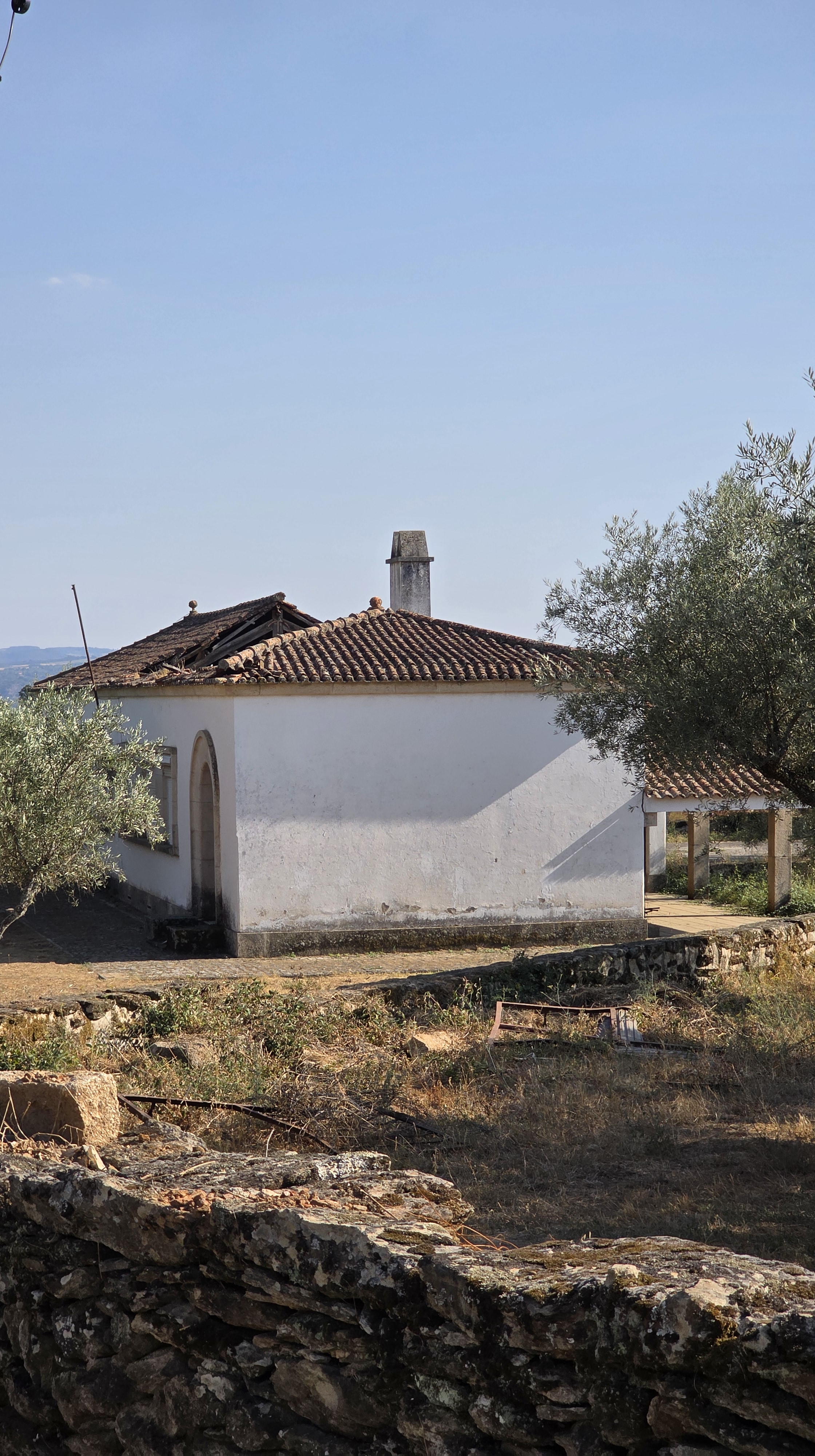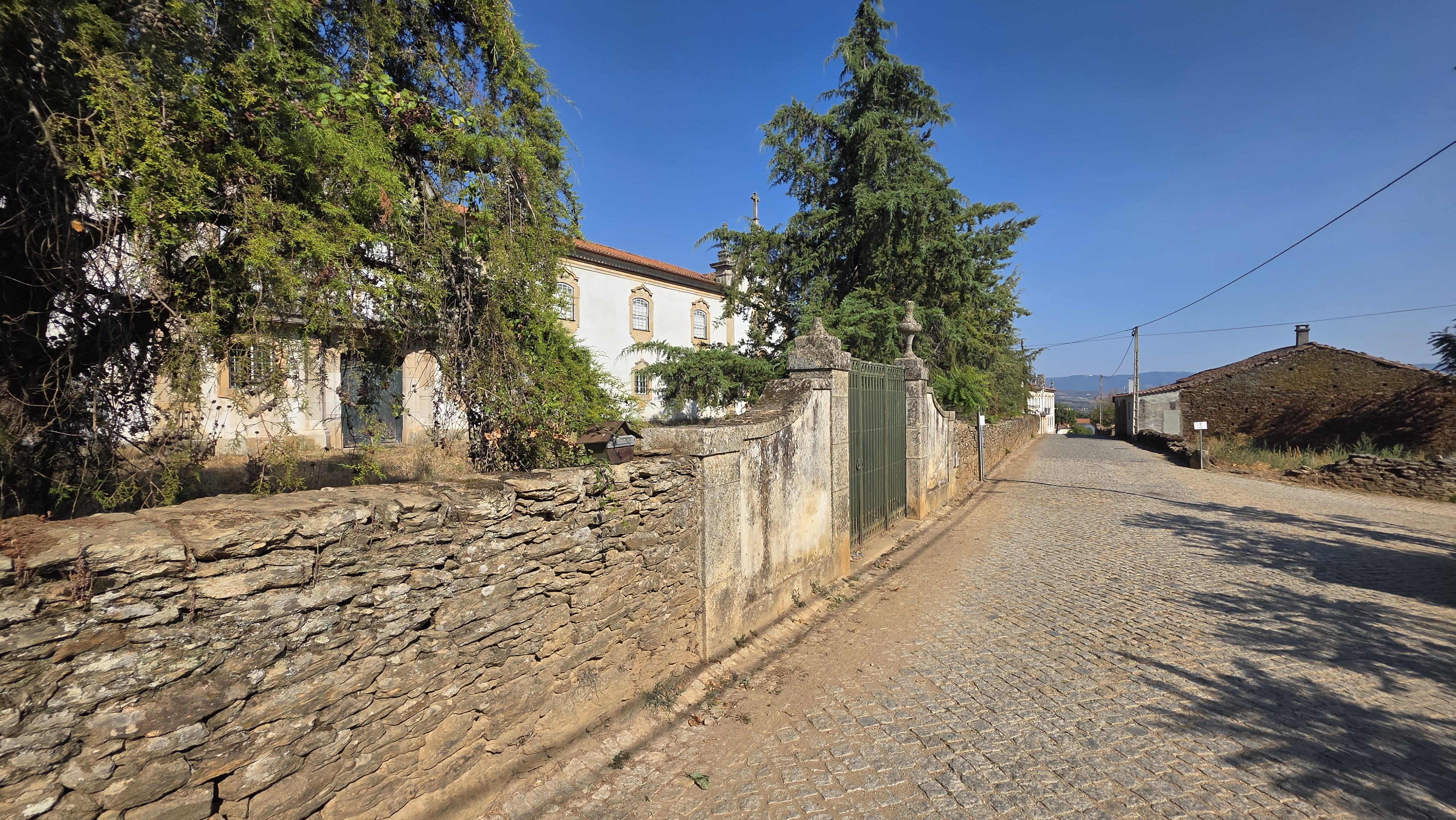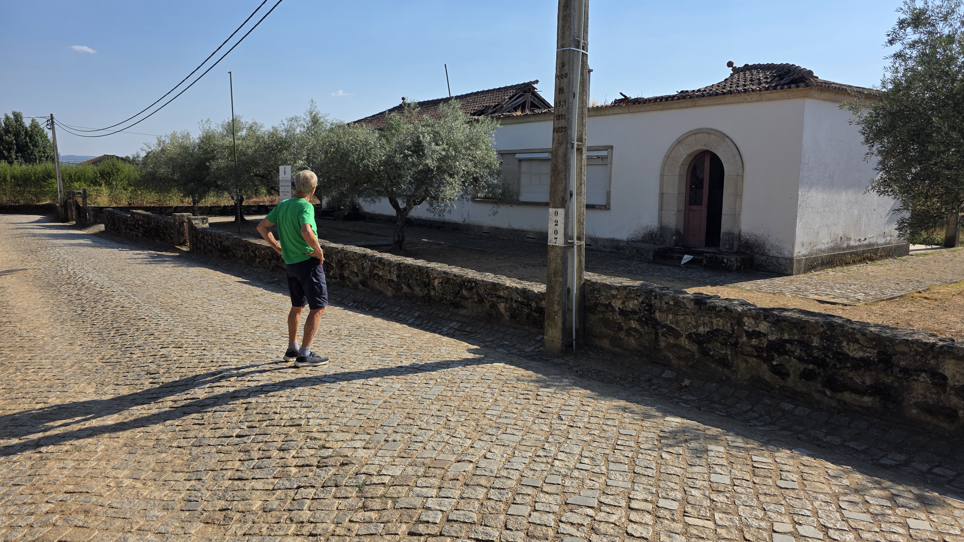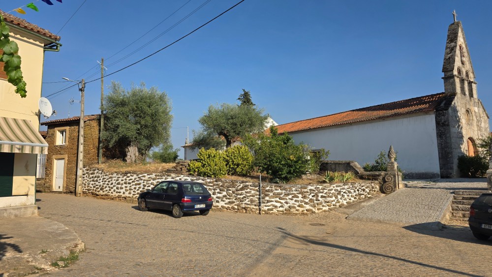 We komen via een smalle weg waar het kerkje en de minimercado aan liggen het dorpje Alvites binnen. Al snel doemt een enorm huis op: we zijn er! Maar nee, we vergissen ons opnieuw. Dit paleis ziet er goed uit: gordijnen voor de ramen, nog redelijk strak in de verf. Ik bestudeer opnieuw het plaatje dat ik op internet van het huis van Gerrit en Charles heb gevonden en constateer: dít kan het niet zijn, dít móét het huis van de buurman zijn.